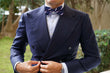 From OTAA's specialty line, this elegantly constructed Navy Blue with Lavender Purple Stripes Bow Tie will make a fresh addition to your summer wardrobe. Handcrafted, it is at once substantially weighty yet impressively breathable.
