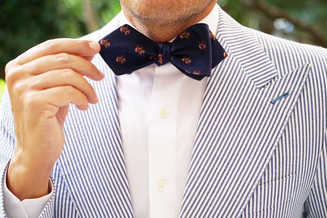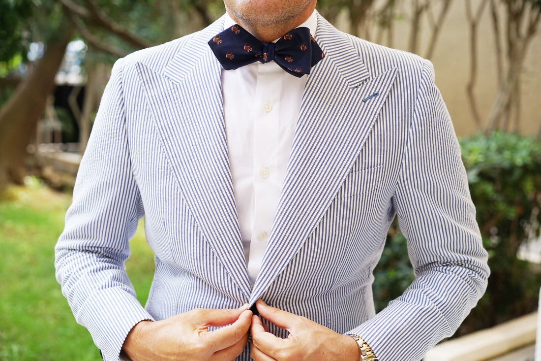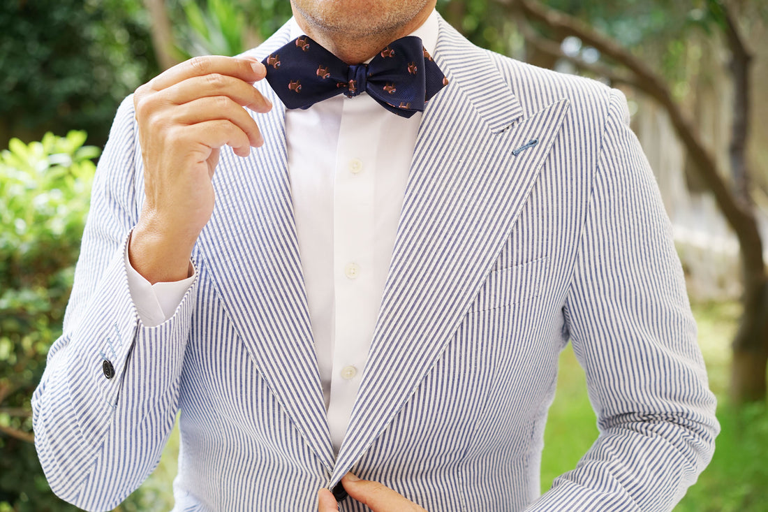 The elder brother at OTAA justifies the Baboon Diamond Bow Ties Self-Tie – “If we’re going to do the Animal Kingdom, we’re going to include every animal, especially baboons." Our hand-sewn method allows the Baboon Diamond Self-Tie Bow to exhibit extraordinary detail as there is little machinery used in the crafting of this tie. Touches such as these make all the difference. Baboons are extremely crafty, intelligent and highly astute. Typically, baboons rise by about 8.00am, have a mutual grooming session and then start looking for food. Inspired by the intelligent mammal, this Baboon Diamond Bow Ties Self-Tie exudes sophistication and is hand cut and sewn on a classic navy backing. Designed exclusively by The Brothers at OTAA.