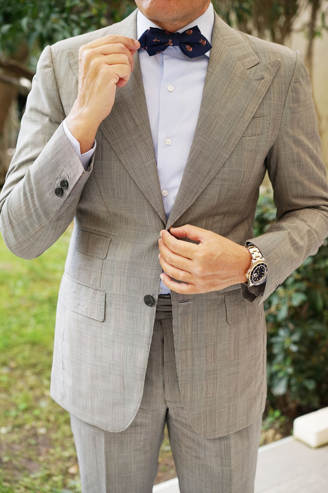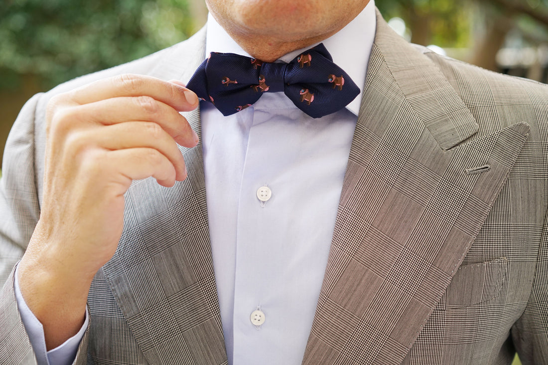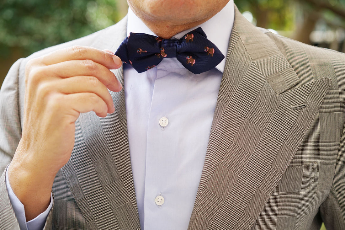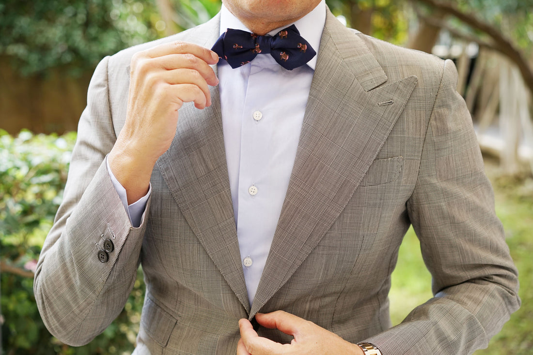 The elder brother at OTAA justifies the Baboon Diamond Bow Tie – “If we’re going to do the Animal Kingdom, we’re going to include every animal, especially baboons." Our hand-sewn method allows the Baboon Pre tied Diamond Bowtie to exhibit extraordinary detail as there is little machinery used in the crafting of this tie. Touches such as these make all the difference. Baboons are extremely crafty, intelligent and highly astute. Typically, baboons rise by about 8.00am, have a mutual grooming session and then start looking for food. Inspired by the intelligent mammal, this Baboon Diamond Bow Tie exudes sophistication and is hand cut and sewn on a classic navy backing. Designed exclusively by The Brothers at OTAA.