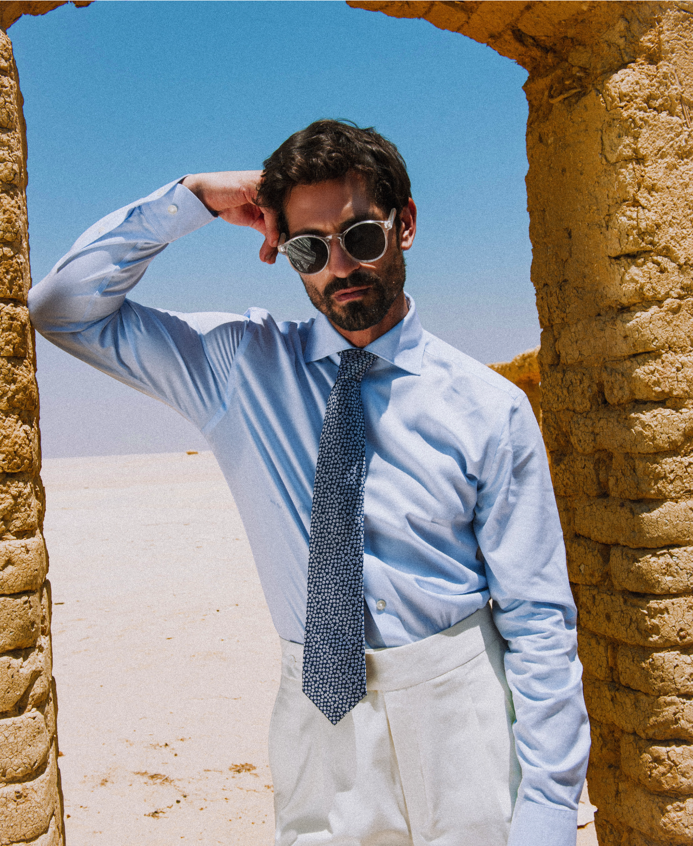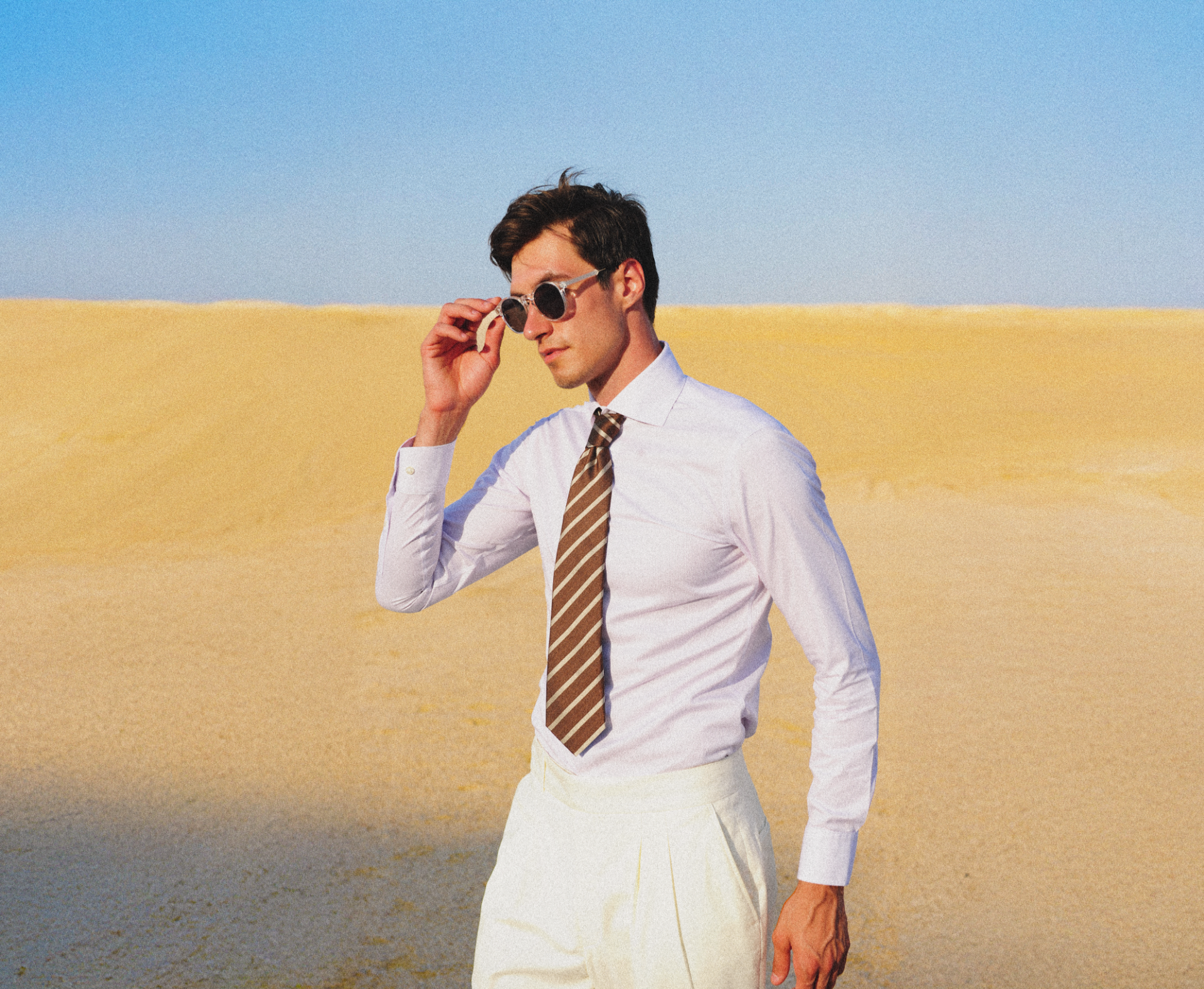 Born from the desert, inspired by epic cinema, and defined by precision. Each piece is cut with restraint, not excess—tailored shirts and ties designed to feel less like fashion and more like discovery.
