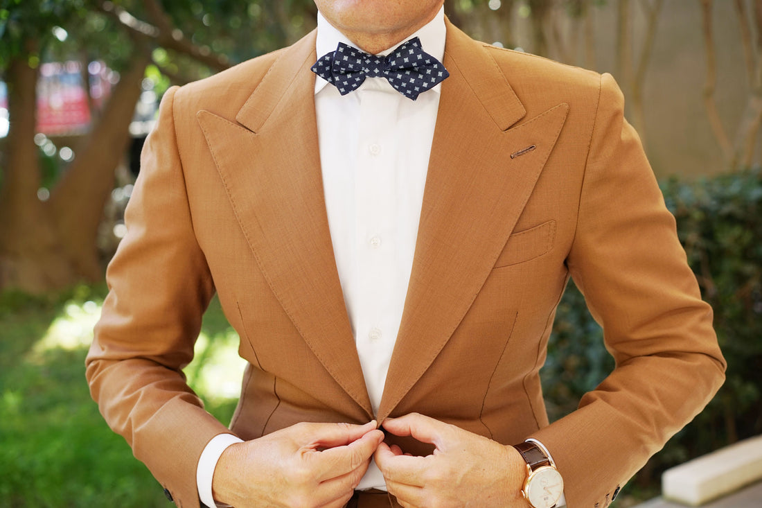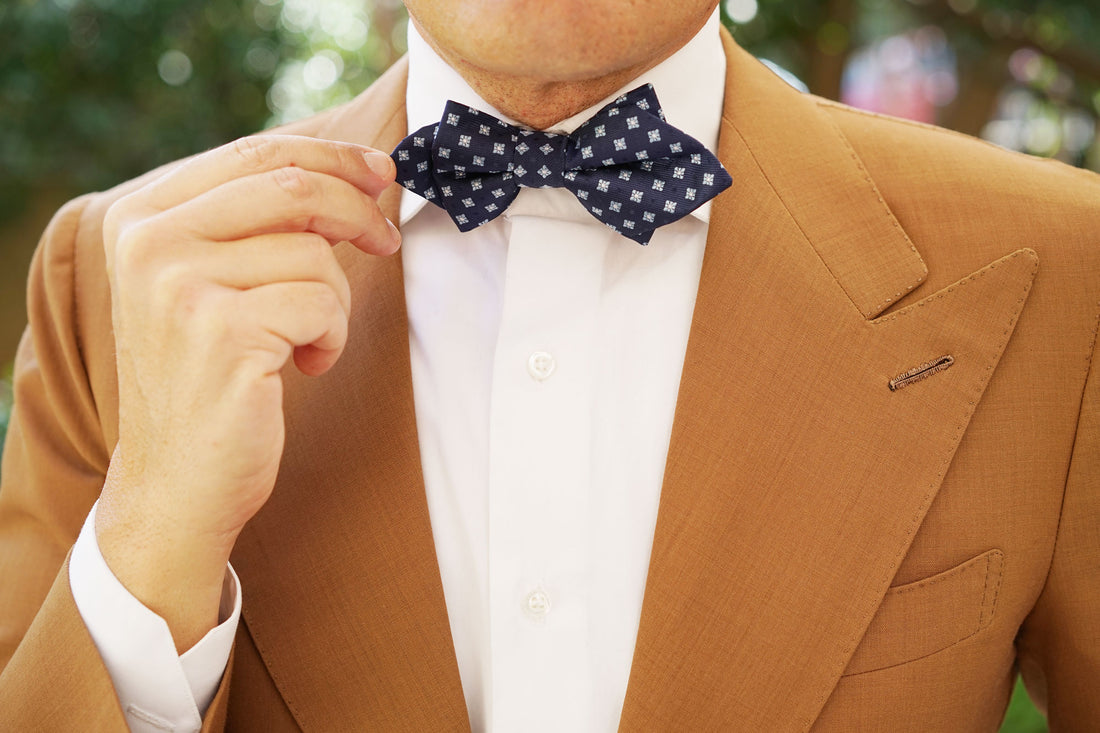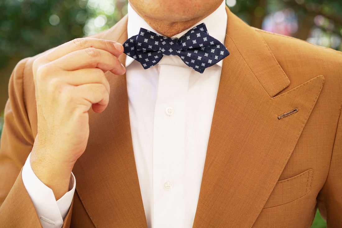 Scrub up to elegant proportions with the Navy Blue with Light Blue Pattern Diamond Bow Tie. With a charming tessellated floral pattern and unique line-grain texture, it is no doubt this Navy Blue with Light Blue Pattern Diamond Bow Tie is boastful of exclusive details. Having been through a process of in-house design, tailoring and hand-stitching; you'll be hard-pressed to find a design elsewhere that's of higher quality. Let the refined navy and light blue details gift your wardrobe a highly versatile asset you'll be reaching for in years to come. Designed exclusively by the Brothers at OTAA.