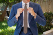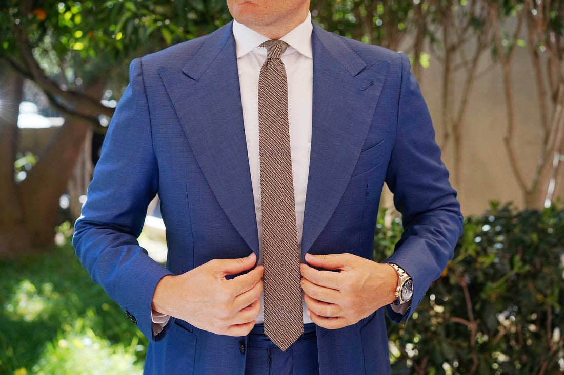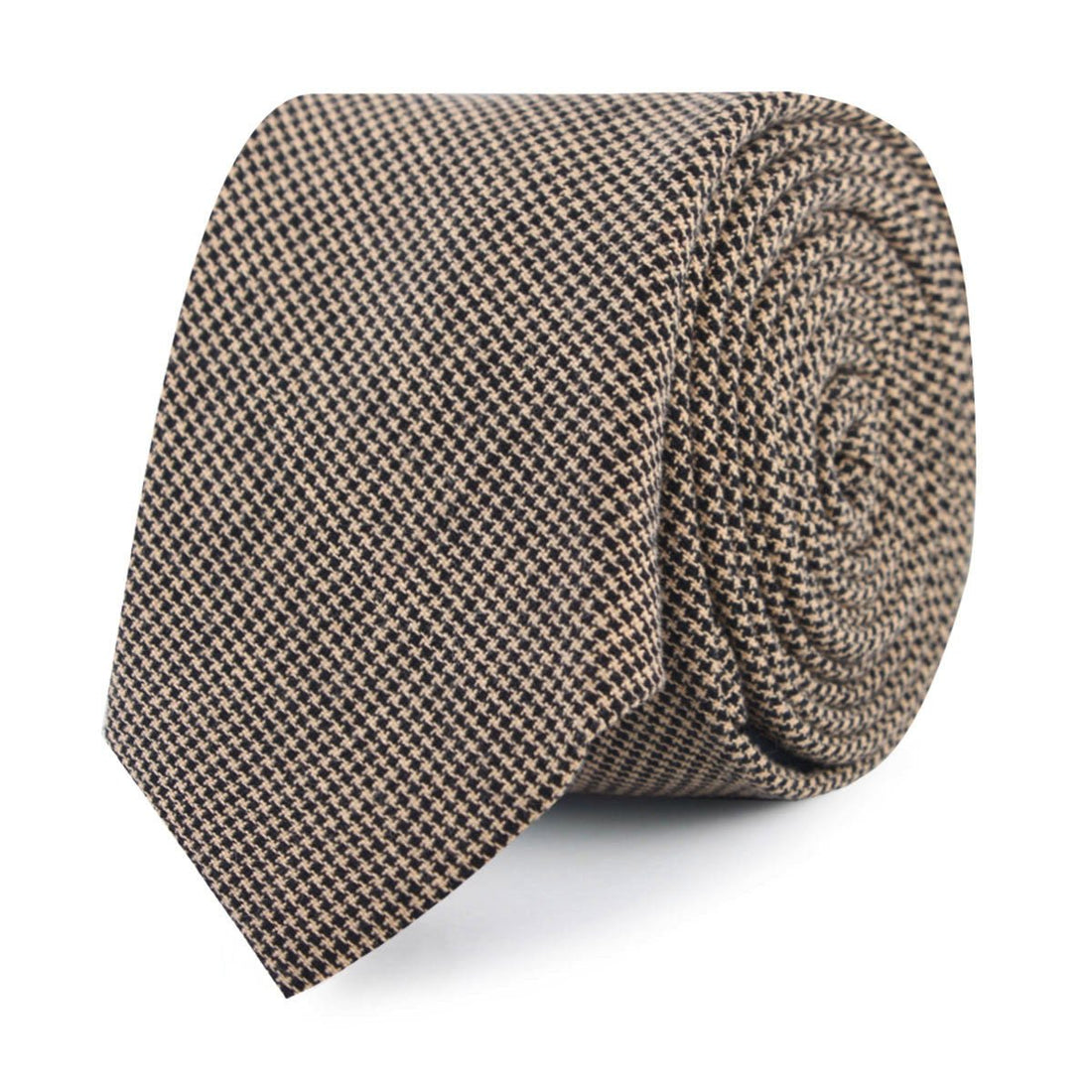 “Great explorers wear khaki,” the Brothers at OTAA profess as they wear their Khaki Black Houndstooth Blend Skinny Tie. Sneaking through the Amazon with their trusty skinny ties, they assumed it was impossible for them to run into trouble. However as soon as they said this, a loud roar echoed from the foliage behind them and a large spotted cat appeared. Inspired by the time the brothers were mauled by a giant leopard, OTAA presents the Khaki Black Houndstooth Blend Thin Tie.
