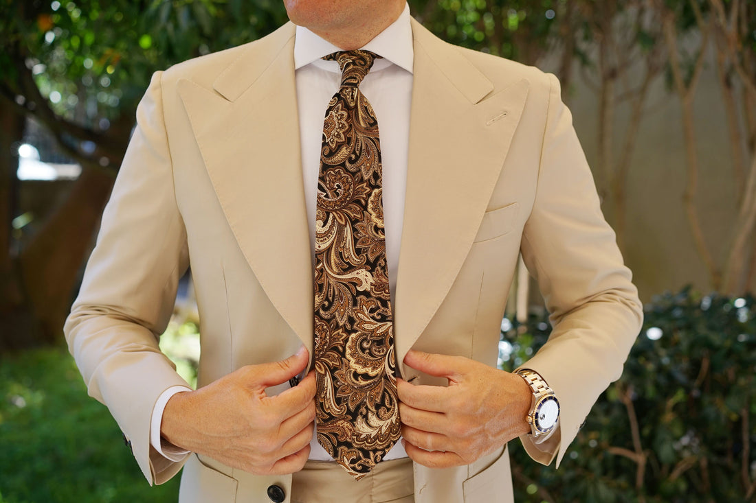 Paisley patterns have long held regal associations; they were reserved for noble regalia in Ancient Persia, and in Europe, they were high in-demand during the 17th century. Finessed with an intricate floral paisley design, this necktie features various tones of brown and beige atop an indulgent black background. Stitched by hand and tailored with elegance, the Filicudi Brown Paisley Necktie showcases the label's dedication to world class quality. Designed exclusively by the Brothers at OTAA.