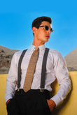 Exemplifying versatile functionality, these Charcoal Grey Suspender Braces bring a polished finish to your tailored outfits. Refreshingly designed with a deep grey complexion, these Charcoal Grey Suspender Braces are a wardrobe mainstay for men who like to dress to the nines. Kitted-out with a flexible microfibre material and detailed with a cross-back style, these men's suspenders are a luxurious masterstroke of sophistication and comfort. Due to its endlessly versatile palette, these men's Charcoal Grey Suspender Braces will pair superbly with smart-casual ensembles as well as wedding styles. Designed exclusively by The Brothers at OTAA.