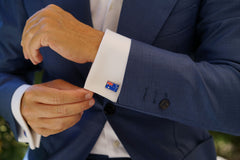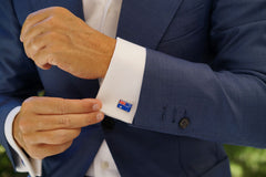 With an enviable design and ebullient palette, it is unmistakable that the Australian Flag Cufflinks are an exclusive design by the Brothers at OTAA. These cuff links are adorned with vibrant stars and Union Jack that boast red, white and blue tones to unleash your inner patriot. Crafted from the finest rhodium and completed with a detailed enamel finish, you will be provided unmatched flair whilst living the Aussie dream.