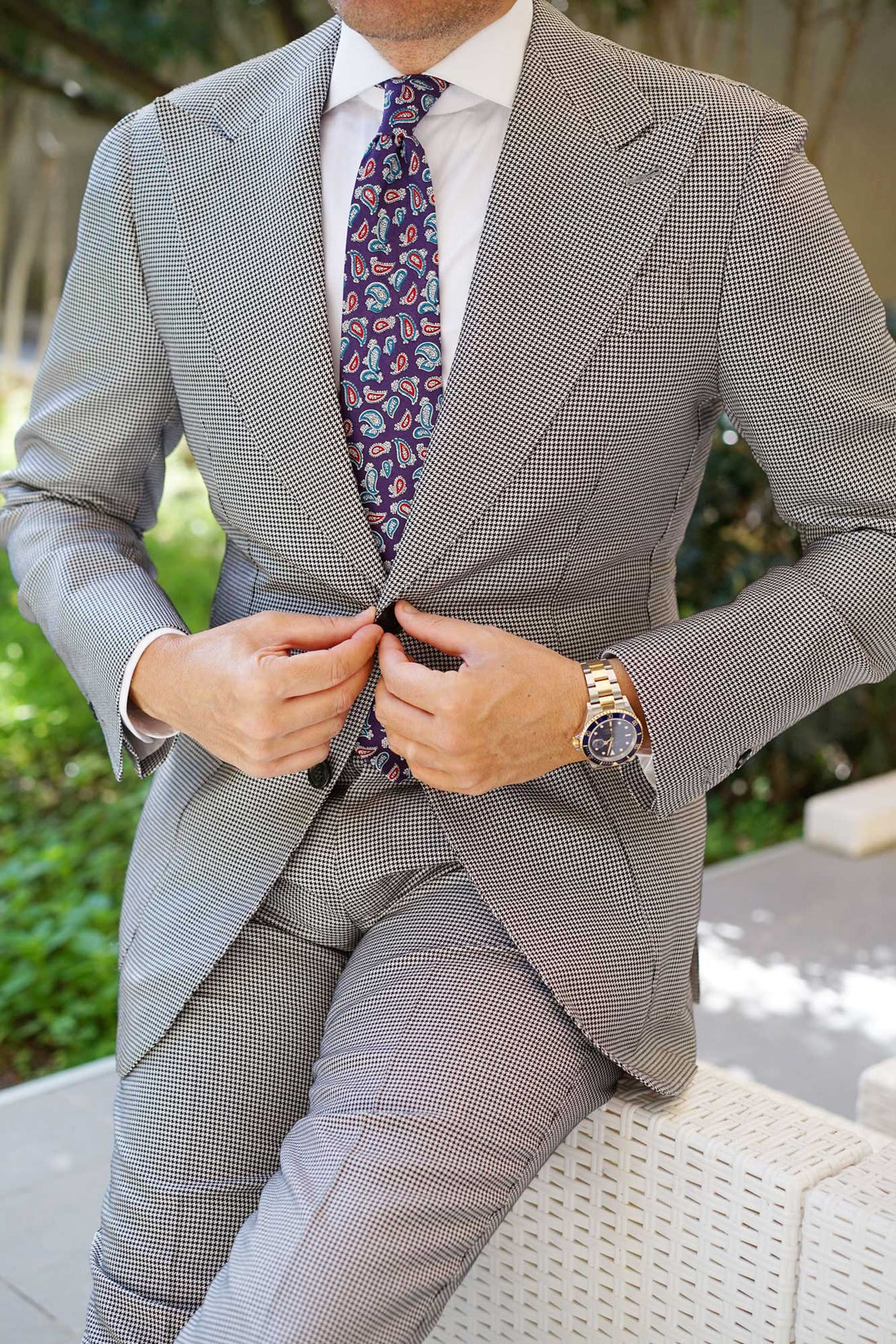 Lago di Bolsena Purple Paisley Fabric Necktie