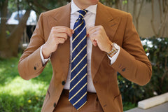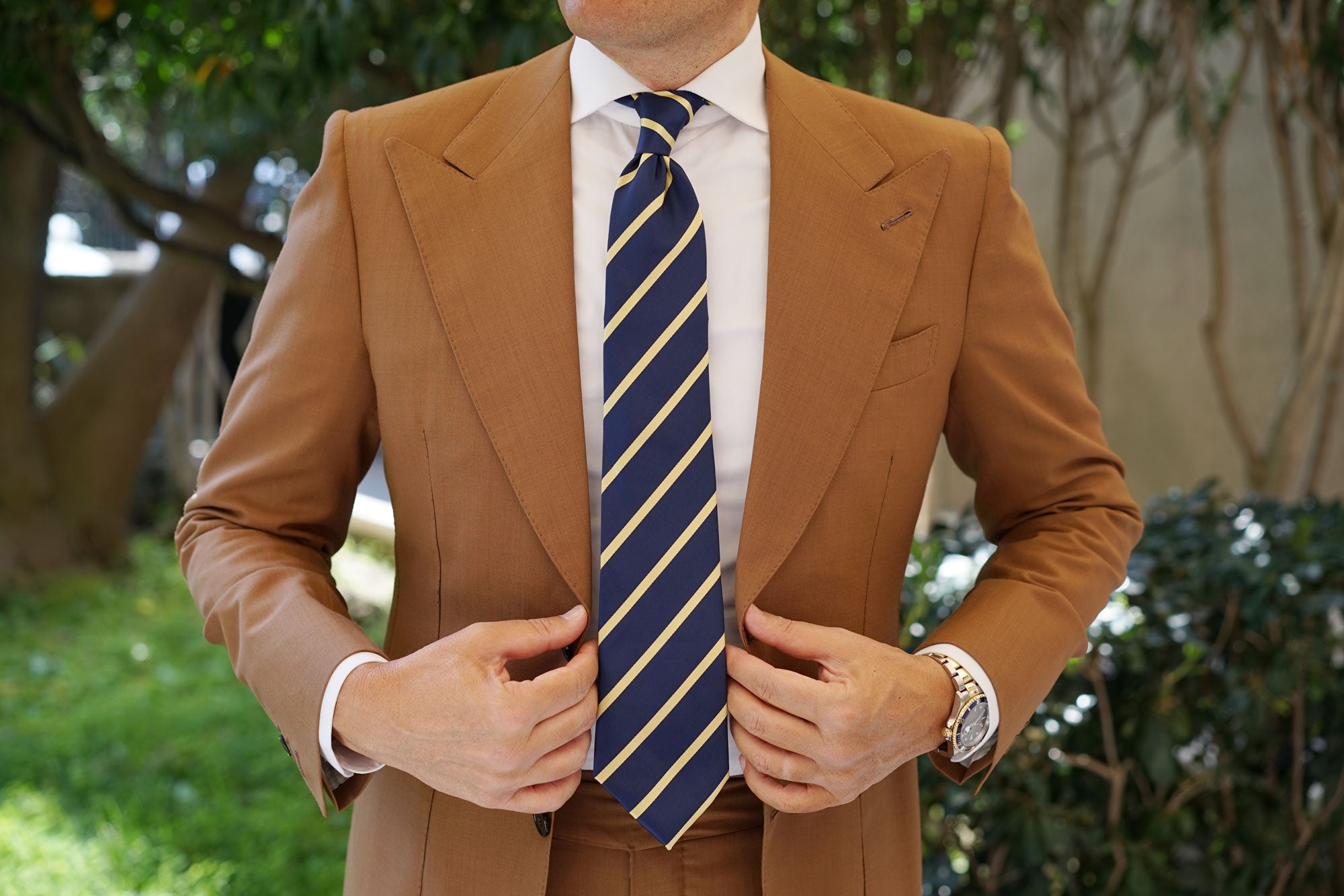 From OTAA's speciality line, this elegantly constructed Navy Blue with Yellow Stripes Necktie will make a fresh addition to your summer wardrobe. Handcrafted, it is at once substantially weighty yet impressively breathable.
