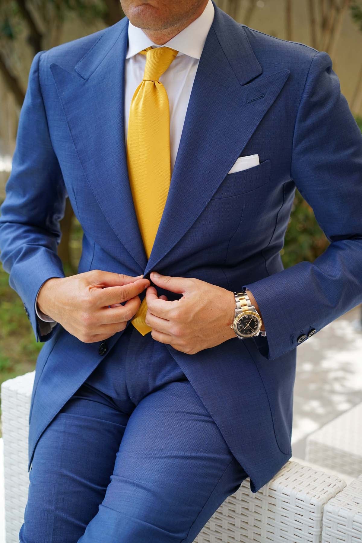 The Honey Gold Yellow Twill Necktie oozes vivacious charm. The rich chartreuse lustre adds a subtle touch of easy, decadent charm to this hand-crafted necktie. The Brothers at OTAA have established a friendly partnership with the bees of Australia, fashioning miniature accessories to impress their Queens, in exchange for the rare reagents involved in creating this scintillating shade of honey gold yellow and the results are something worthy of royalty.