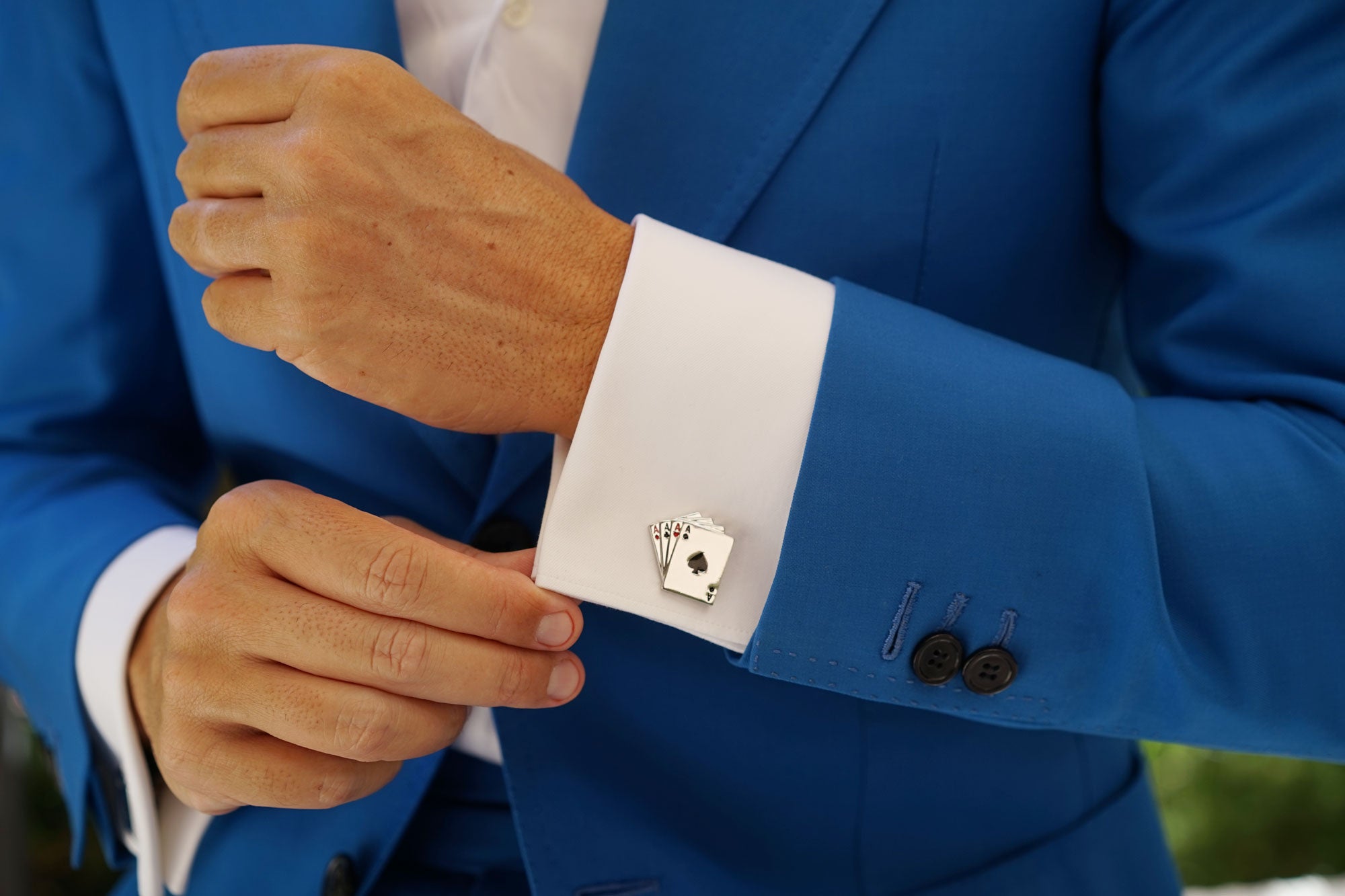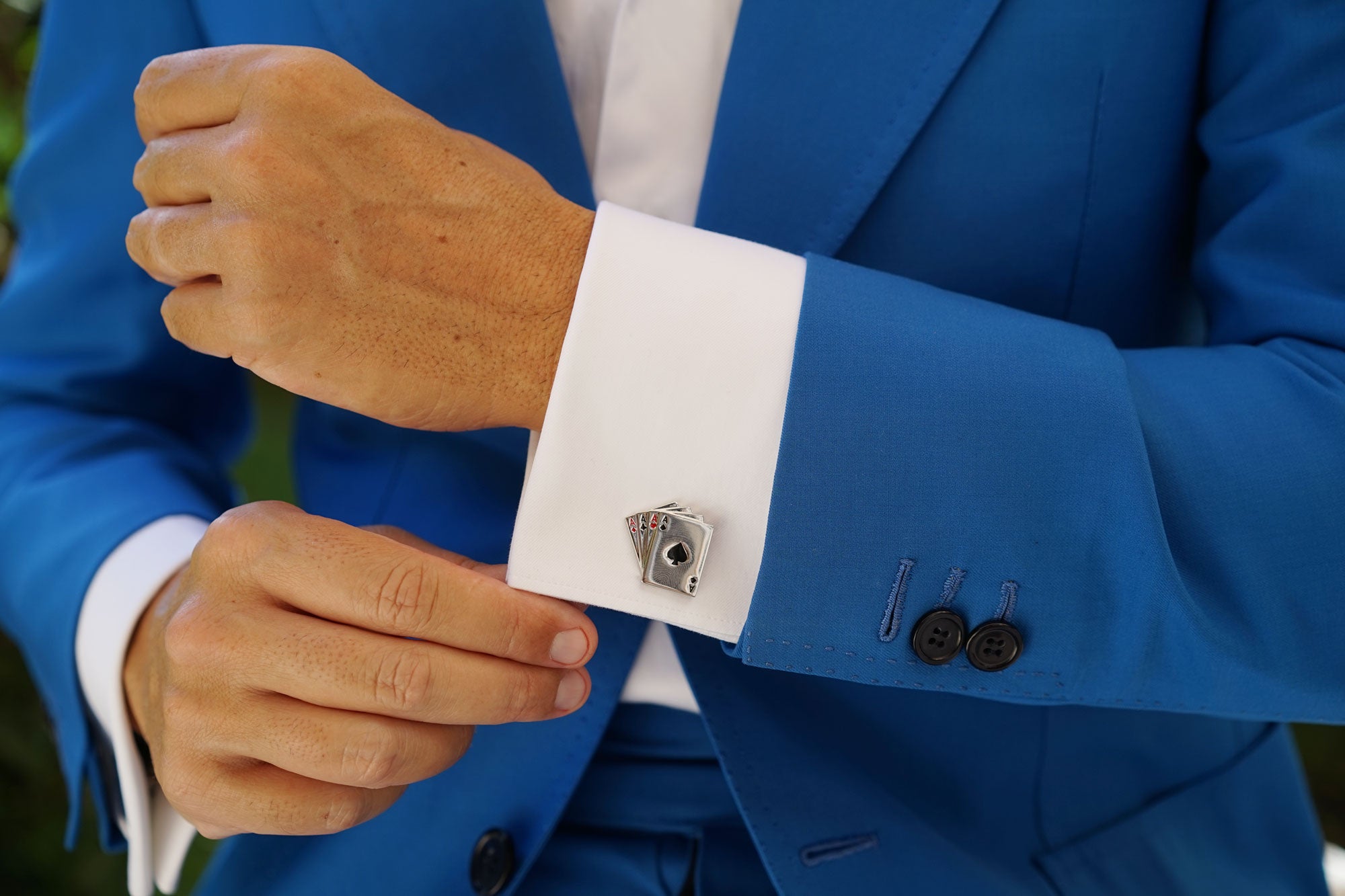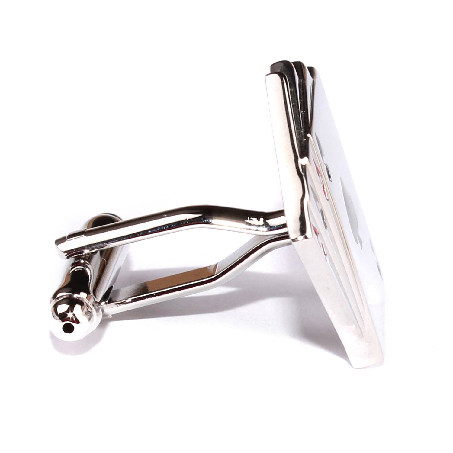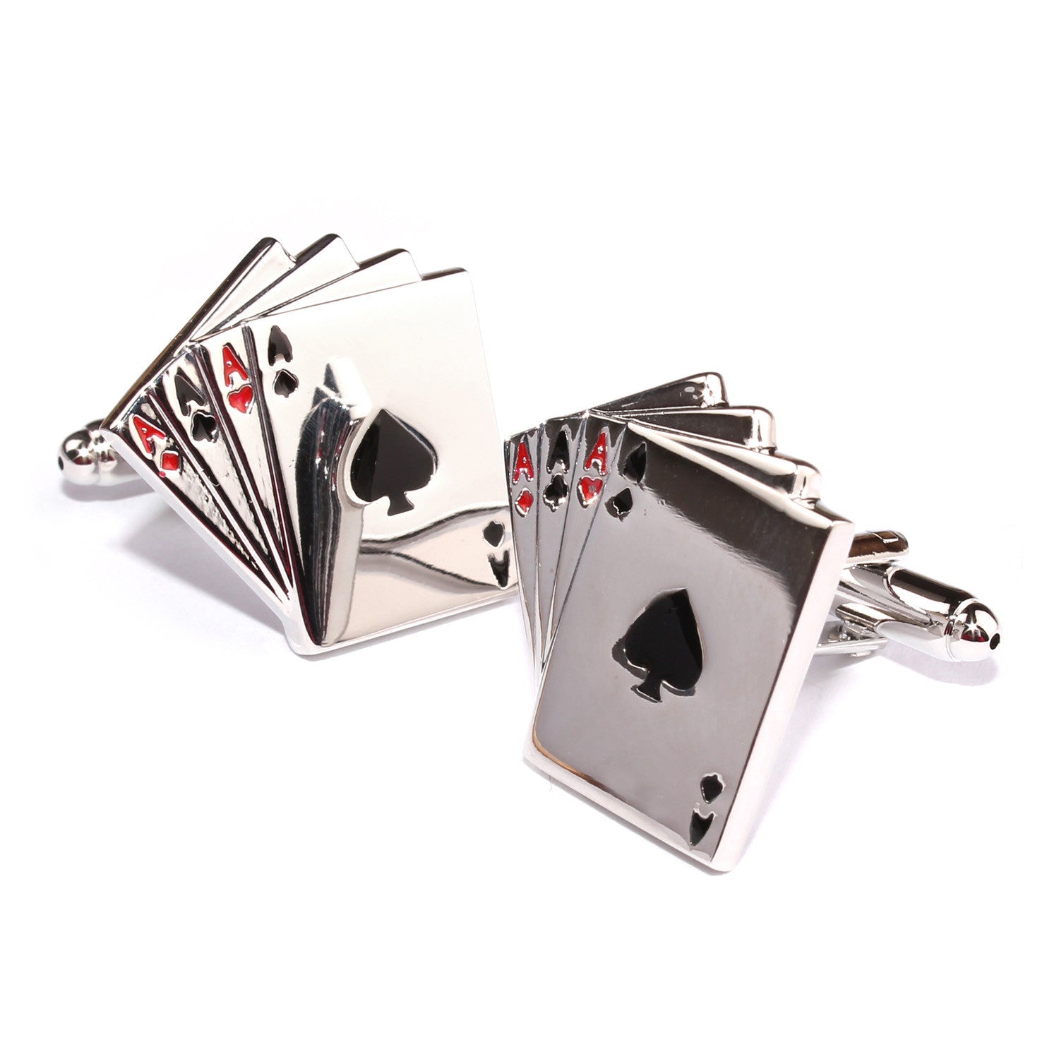 The perfect accessory for formal attire, OTAA's Ace of Cards Cufflinks are imbued with sentiments of charm and elegance. The ace of spades is traditionally the highest card in the deck of playing cards. The ornate design traces back to the 17th century when James l imposed laws requiring the ace of spades to bare the insignia of the printing house. These luxurious Ace of Cards Cufflinks are chiselled by hand and feature an immaculate gloss silver finish with red & black highlights. Wear this in-house design to bring an accomplished accent to formal tailoring.
