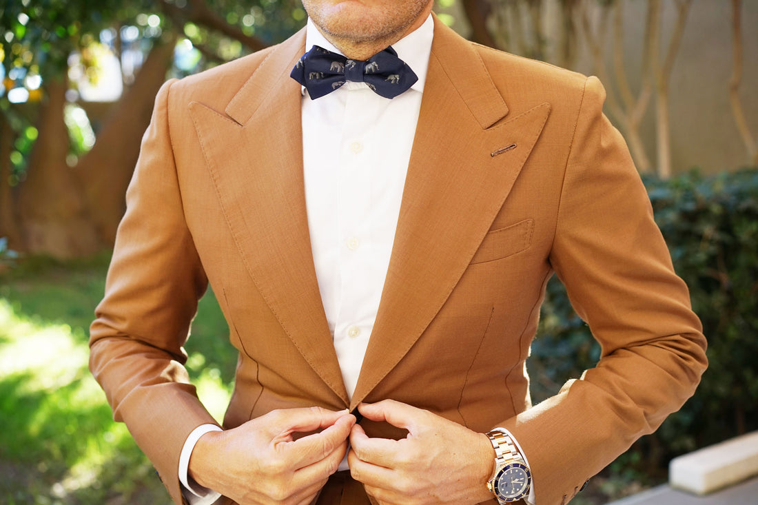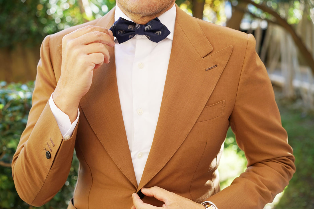 The hand-sewn approach allows the African Forest Elephant Pre tied Diamond Bowtie to show extraordinary detail as there is little machinery used in the crafting of this tie. Touches such as these make all the difference. Besides, at least next time when we go on a Safari, we will have covered the whole jungle. Inspired by this lovable Elephant that we saw in the flesh, this African Forest Elephant Diamond Bow Tie exudes sophistication and is hand cut and sewn with a classic navy backing. Designed exclusively by The Brothers at OTAA.