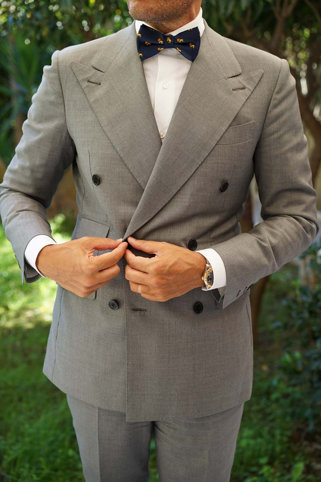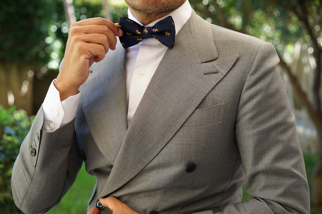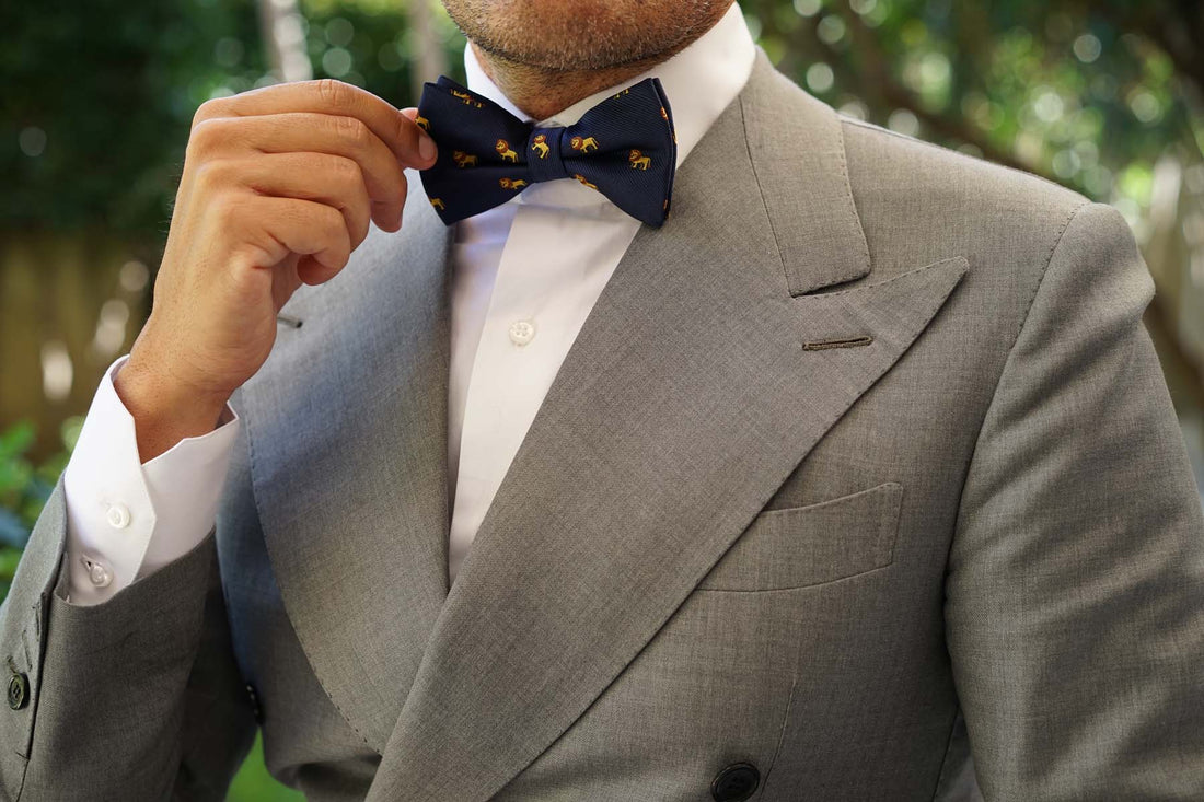 OTAA's African Lion Bow Tie is backed in a layer of deep navy - a nod to the brothers’ playful and functional aesthetic. The King of Beasts Lion array appliquéd is hand stitched, boosting this piece's cool appeal. Generally, lions can reach speeds of up to 81 km/h (50 mph) but only in short bursts because of a lack of stamina. Inspired by the king of the jungle, this African Lion Bow Tie will separate you from sheep to leader of the Animal Kingdom.