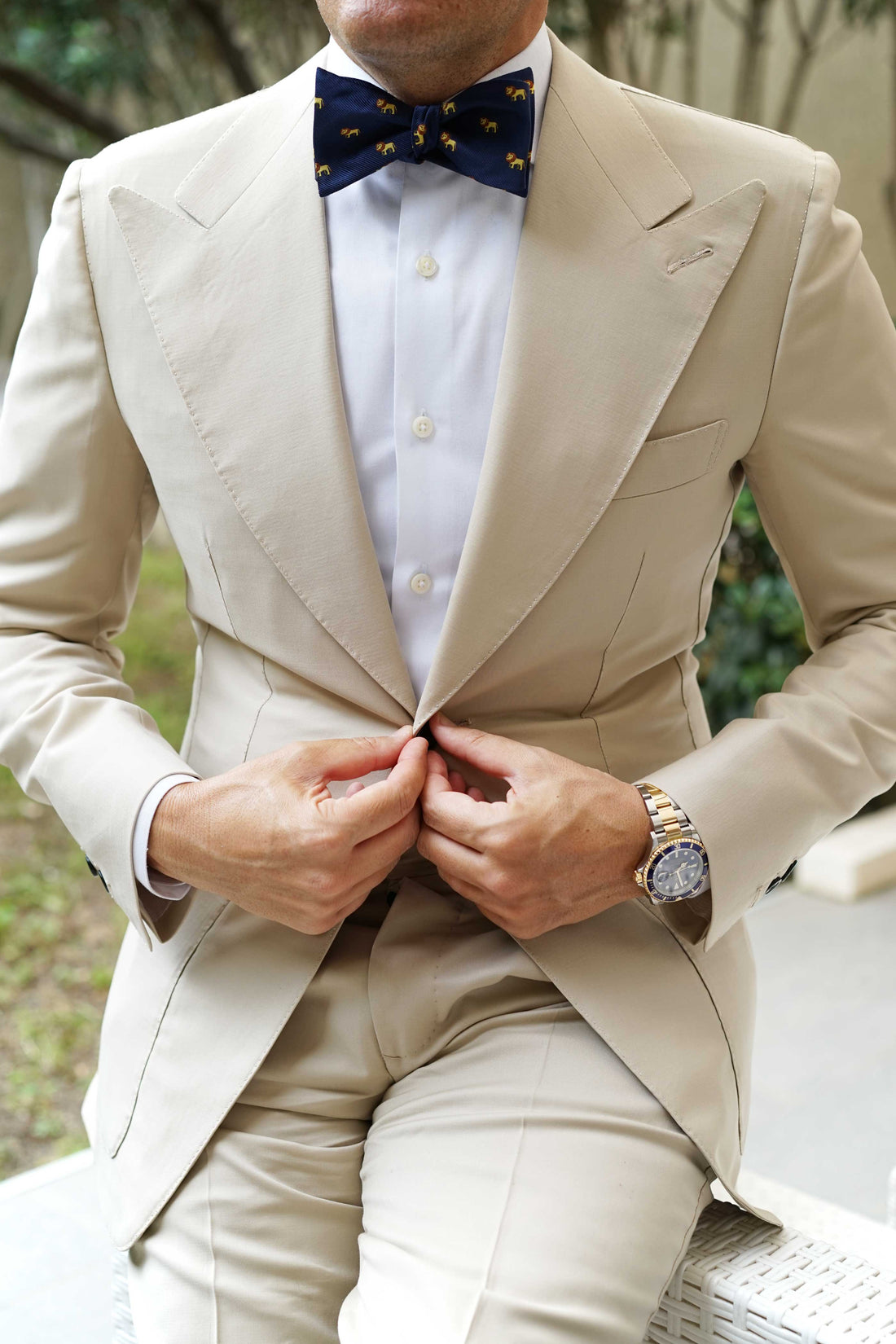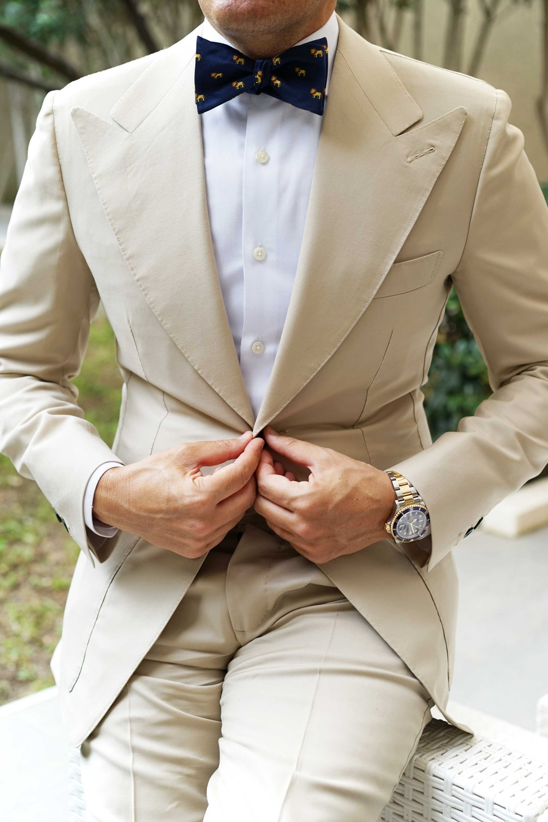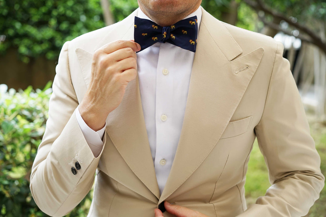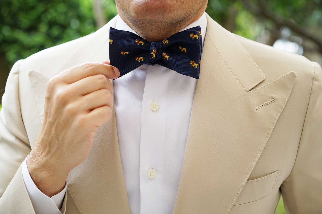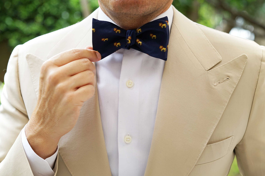 OTAA's African Lion Self Bow Tie is backed in a layer of deep navy - a nod to the brothers’ playful and functional aesthetic. The King of Beasts Lion array appliquéd is hand stitched, boosting this piece's cool appeal. Generally, lions can reach speeds of up to 81 km/h (50 mph) but only in short bursts because of a lack of stamina. Inspired by the king of the jungle, this African Lion Self Bow Tie will separate you from sheep to leader of the Animal Kingdom.