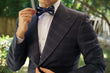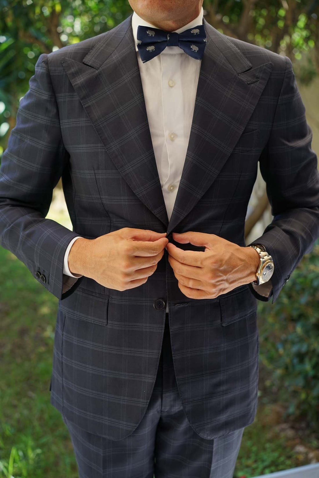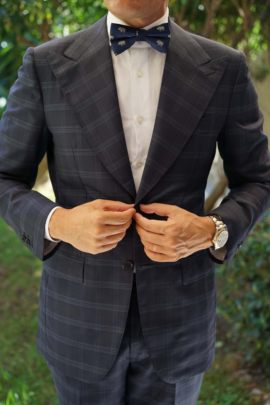Stitched by hand and tailored from a plush fabric, this African Rhino Bow Tie offers luxurious comfort as well as sleek style. Magnificently finessed in a navy blue and grey palette, this bow tie is a versatile staple that will compliment a myriad of formal and casual styles. Designed exclusively by the Brothers at OTAA.