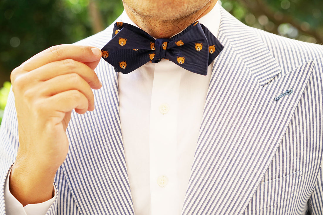 Our hand-sewn method allows the American Brown Bear Diamond Self-Tie Bow to exhibit extraordinary detail as there is little machinery used in the crafting of this tie. Touches such as these make all the difference. Bears have an excellent sense of smell, better than dogs or possibly any other mammal. The American Brown Bear Diamond Bow Ties Self-Tie exudes sophistication and is hand cut and sewn on a classic navy backing. Designed exclusively by The Brothers at OTAA.