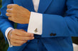 Includes a small cylinder at the back that rotates 90 degrees to hold the cufflink in place