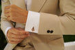 Includes a small cylinder at the back that rotates 90 degrees to hold the cufflink in place