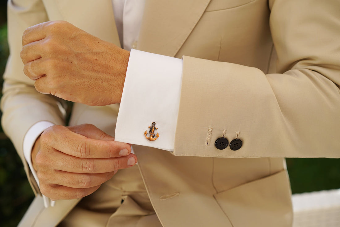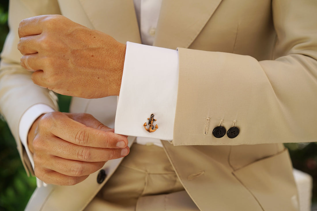 Atop a yacht with a martini in-hand, the elder OTAA Brother professed "exquisite" as his Antique Copper Anchor Rope Cufflinks glistened in the sunset. Designed with the label's signature nautical flair, the Brothers at OTAA haven taken inspiration from Melbourne's sleek coastal style. This design was chiselled from rhodium by hand and features a luxurious antique copper coating. The promise of sophistication is delivered through the eye-catching anchor design that imbues formal looks with a nautical motif. The antique copper finish invokes a warm bronze complexion that will emanate a vintage appeal.