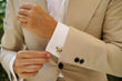 Includes a small cylinder at the back that rotates 90 degrees to hold the cufflink in place