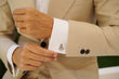 Includes a small cylinder at the back that rotates 90 degrees to hold the cufflink in place