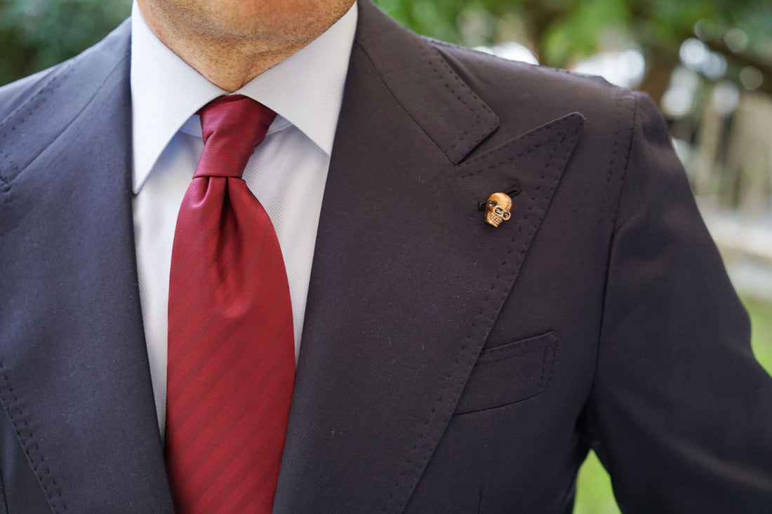 An exotic accompaniment to a refined look, OTAA's Antique Skull Lapel Pin exudes intricate design. In 1922 the discovery of the virtually intact tomb of Tutankhamen became probably the best known and most spectacular archaeological find anywhere in the world. The small tomb contained hundreds of objects, many of them richly decorated and covered in gold and blue, which would be needed by the king in his afterlife. In tribute to the king, this lavish Antique Skull Lapel Pin by OTAA exudes a classically refined sense of style. Hand-chiselled impeccably from rhodium, the cracked skull design is embossed with intricate details of unparalleled execution. The antique red copper finish delivers a warm bronze palette that will enrich your ensemble with a vintage flair. Designed to embolden your attire with strength, this lapel pin is exuberant in artisanal flair.