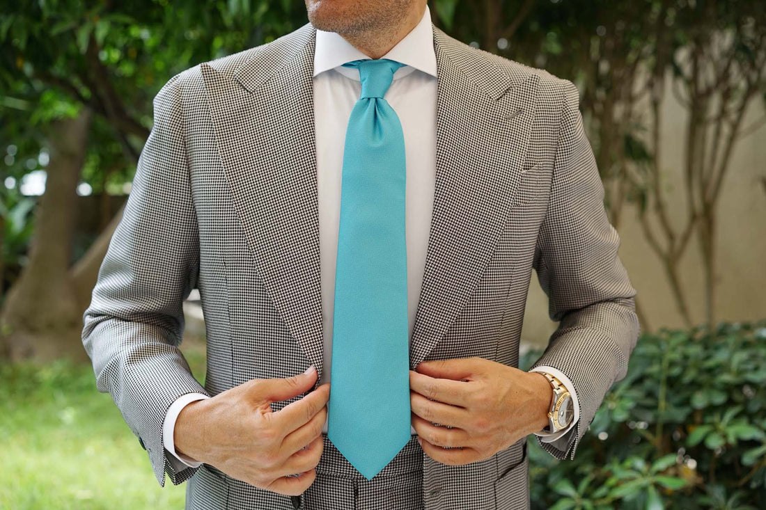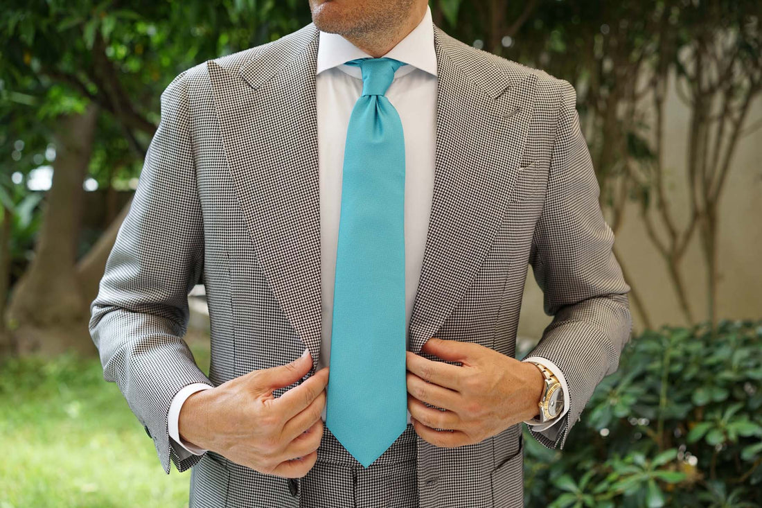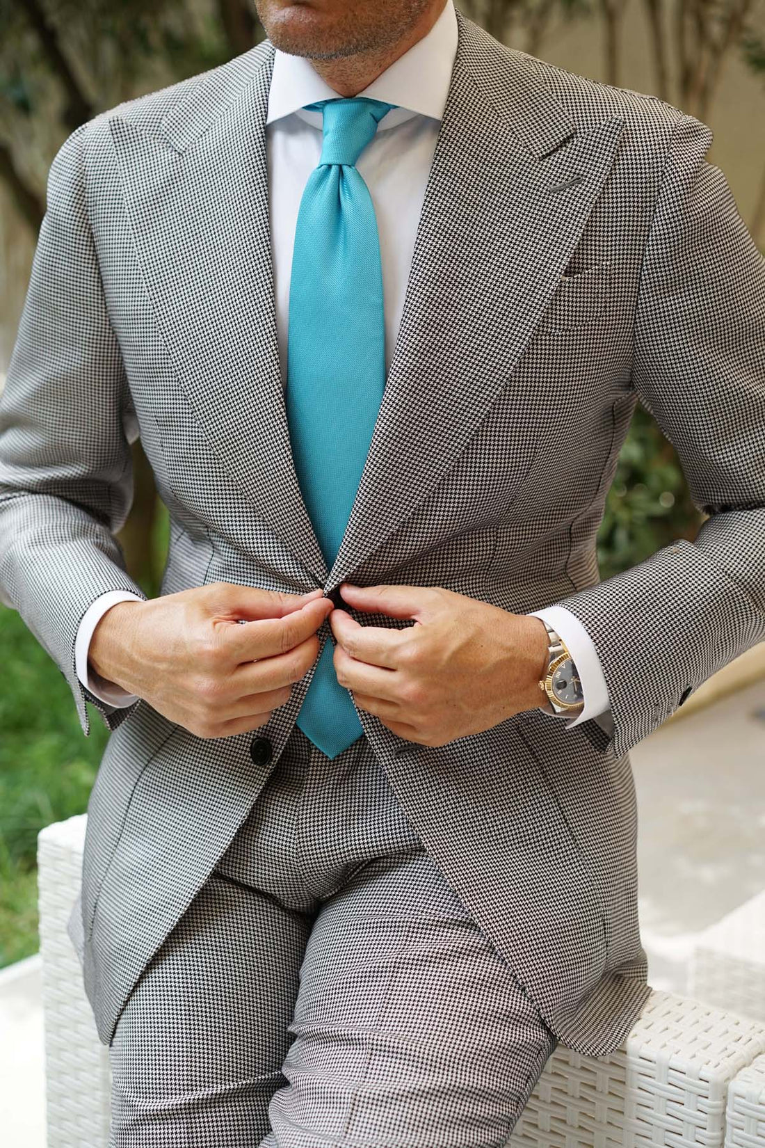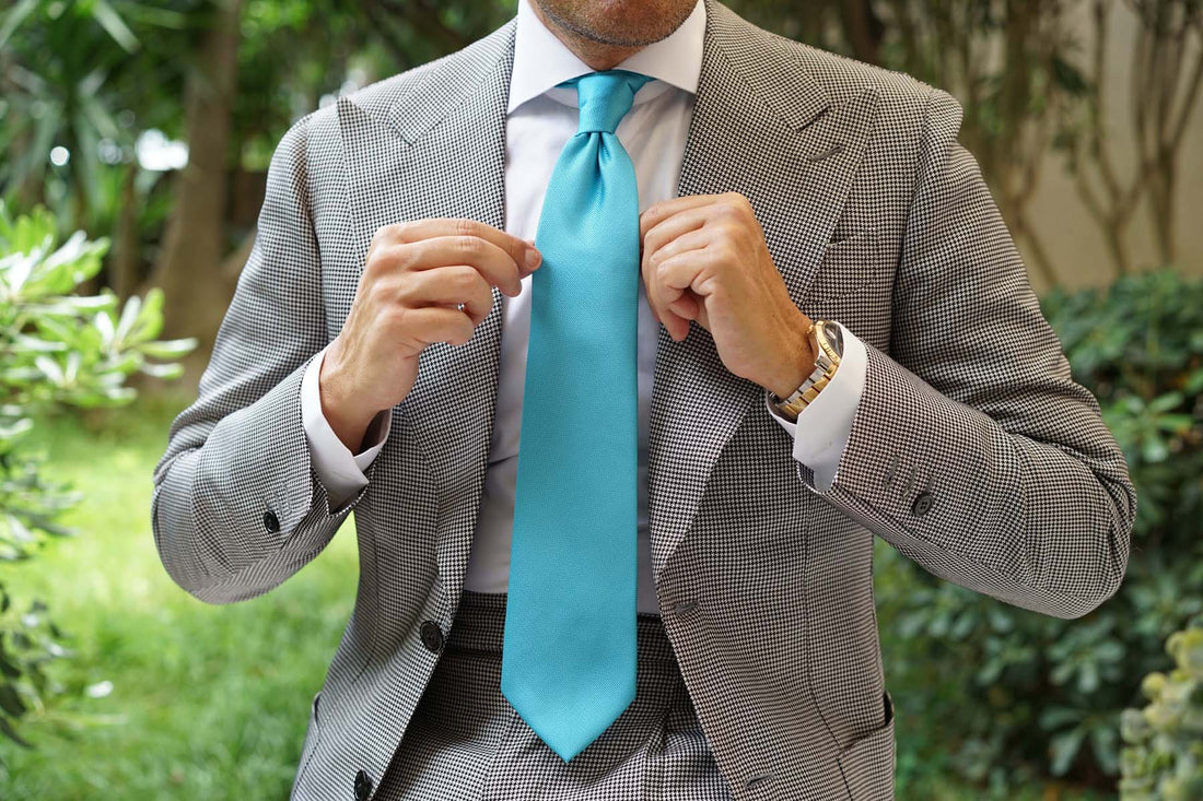 The high-quality satin is woven in such a manner that it shimmers vividly. The weave of the fabric is arranged into diagonally stroked bevelling that creates a finely textured appearance, which is pleasingly smooth to the touch. The Aqua Blue Malibu Weave Tie will paint a lick of Malibu panache onto your formal combination.