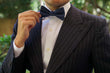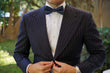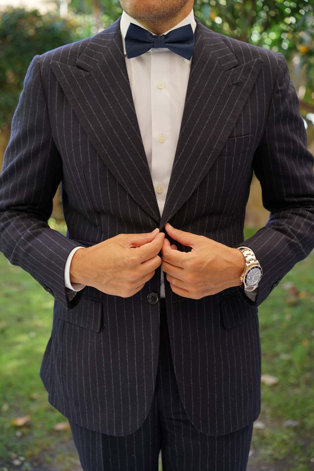 This Aztec Blue Herringbone Bow Tie offers a wealth of luxurious details. The Brothers at OTAA prize world-class tailoring, which is why this pre-tied bowtie has stitched by hand from sumptuous blue satin. Superbly tessellated with a herringbone design, this bow tie delivers on heavenly texture as well as detail. The refined navy palette is complemented by subtle light blue stitches for a multifaceted appeal. Designed exclusively by the Brothers at OTAA, this Aztec Blue Herringbone Bow Tie gives an exquisite completion to formal styles.