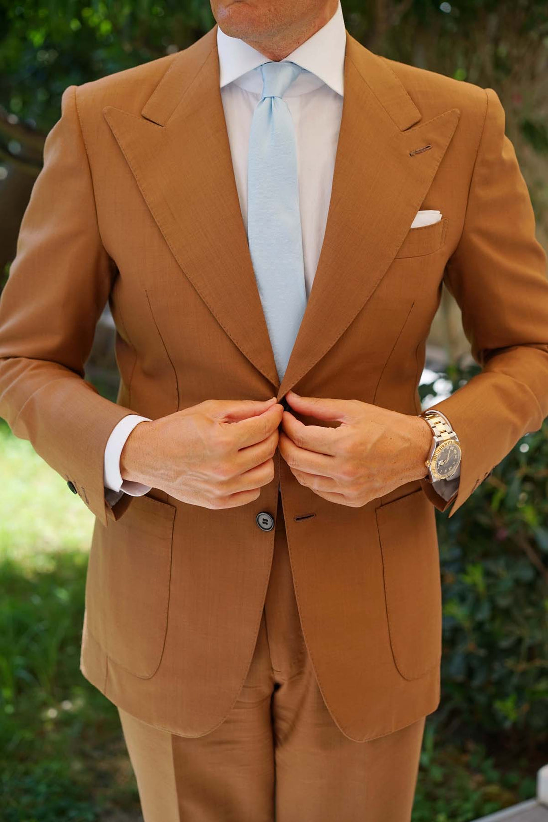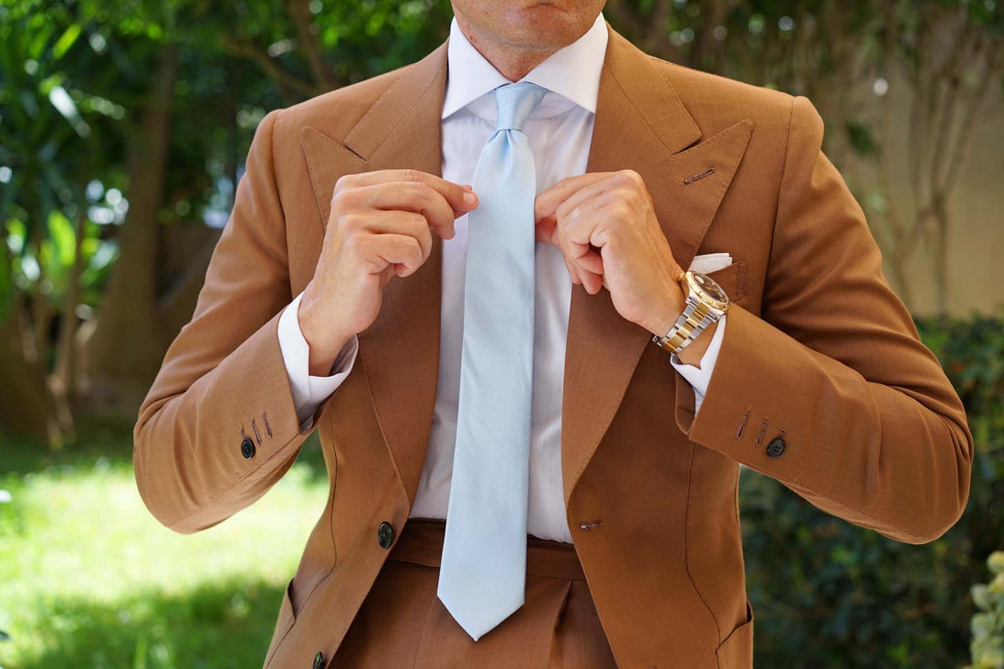 Baby Blue Herringbone Chevron Skinny Tie Fabric