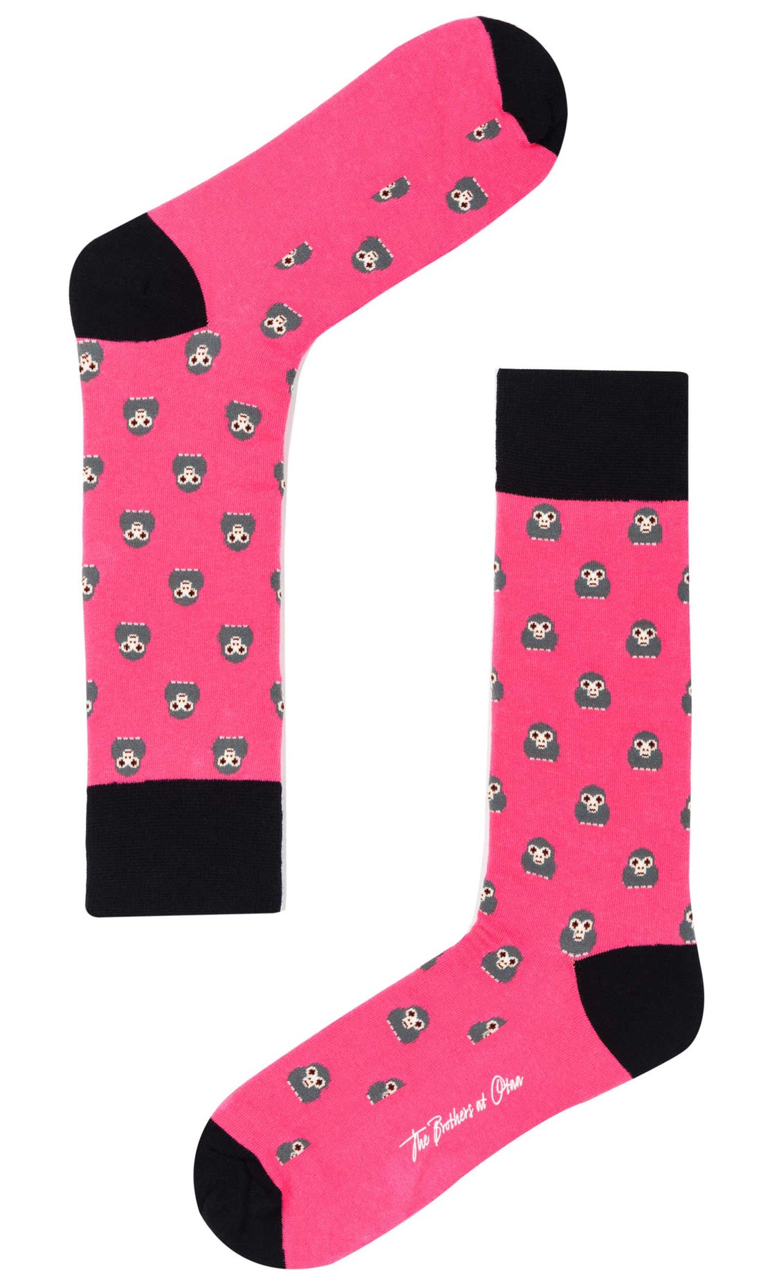 Handcrafted from a plush combed cotton blend and finessed with a 200 needle stitch, these Baby Gorilla Socks are no doubt a front-runner to get you scrubbed up with maximum comfort. Playfully tessellated with brown gorillas atop a flamboyant hot pink base, there's no doubt this design will give a vibrant outlook to any outfit. Designed exclusively by the Brothers at OTAA.