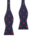 Luxuriously handcrafted from a finely woven material, this Beach Sand Crab Self Tie Bow Tie is a divine demonstration of the label’s high-quality philosophy. Adorned with striking red and navy blue hues, this number will surely add a pop of colour to any outfit of choice. Let the subtle diagonal lines on the navy backing give your boardroom looks a detailed point of difference. Designed exclusively by the Brothers at OTAA.
