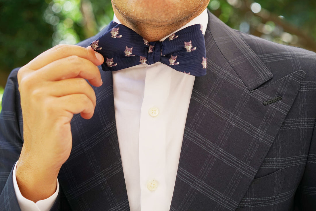 This unsuspecting Bengal Wolf Diamond Self-Tie Bow will give your wardrobe the lift that you've been seeking. The Bengal Wolf Diamond Bow Ties Self-Tie features a playfully scattered array of wolves on a navy background. The lightweight material makes it a great option for the day of the year that you choose to be a semi-demigod.