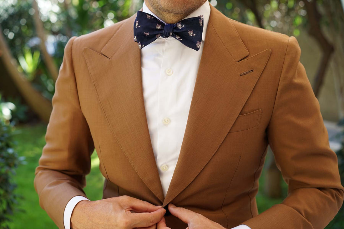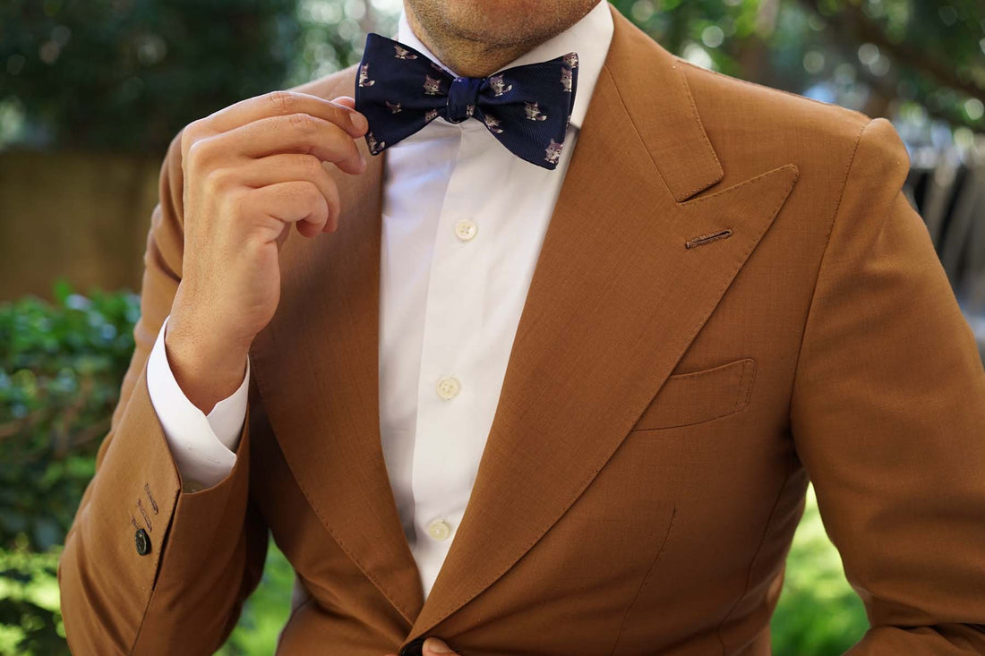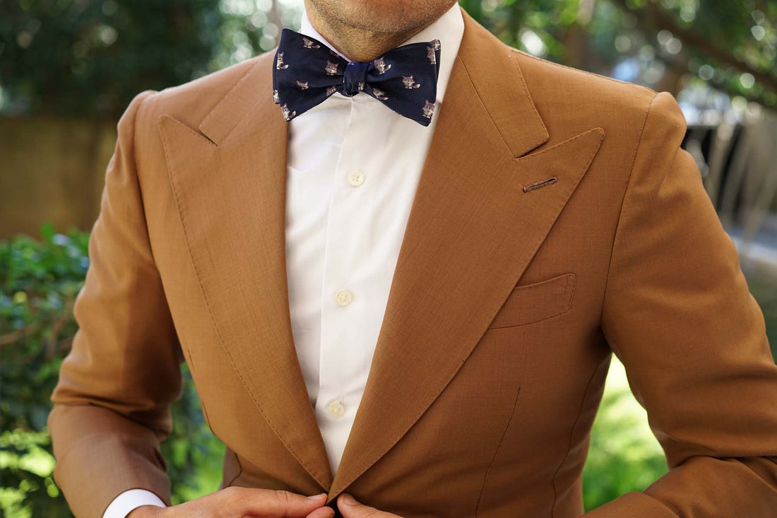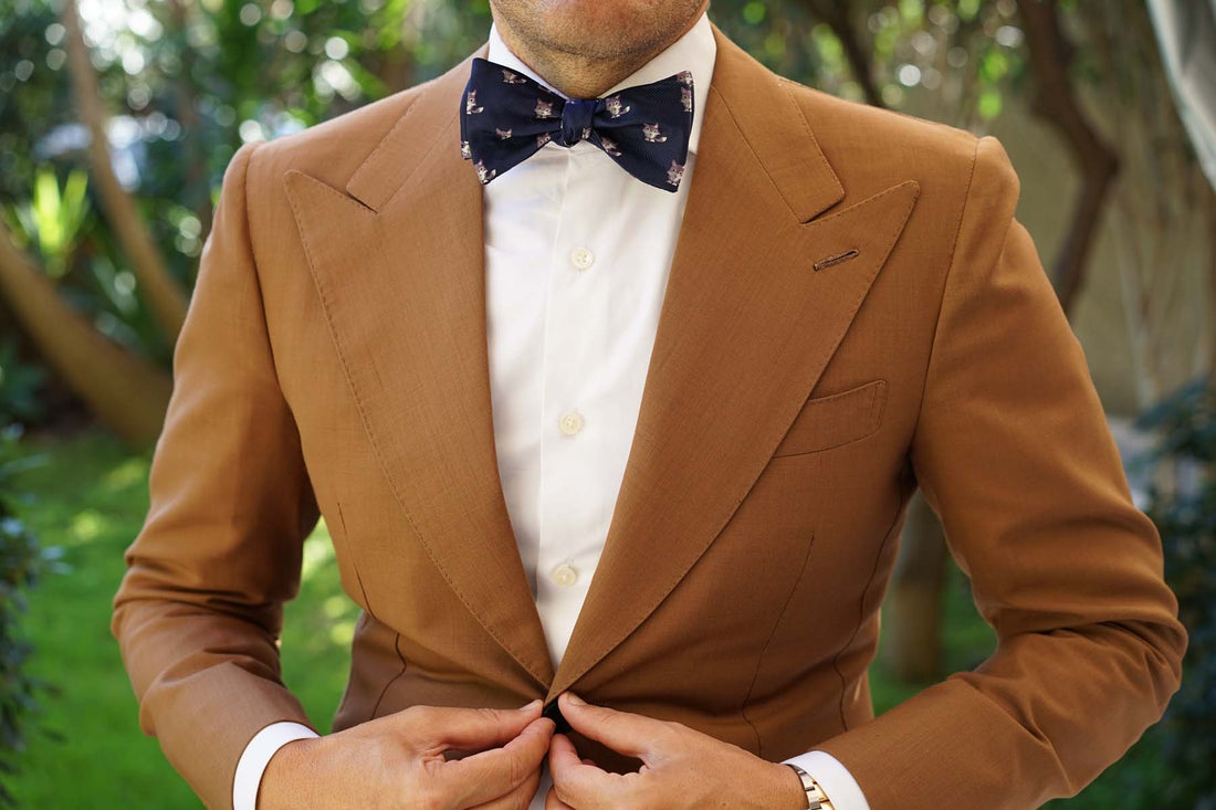 This unsuspecting Bengal Wolf Self Tie Bowtie will give your wardrobe the lift that you've been seeking. The Bengal Wolf Self Bow Tie features a playfully scattered array of wolves on a navy background. The lightweight material makes it a great option for the day of the year that you choose to be a semi-demigod.