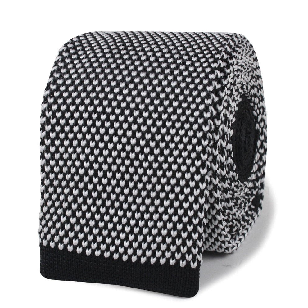 Emanating a sense of timeless appeal, this Bennett-inspired knitted tie boasts inherently classic features. The black and white tones offer a timeless duet that will pair harmoniously with a myriad of different hues.