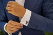 Includes a small cylinder at the back that rotates 90 degrees to hold the cufflink in place