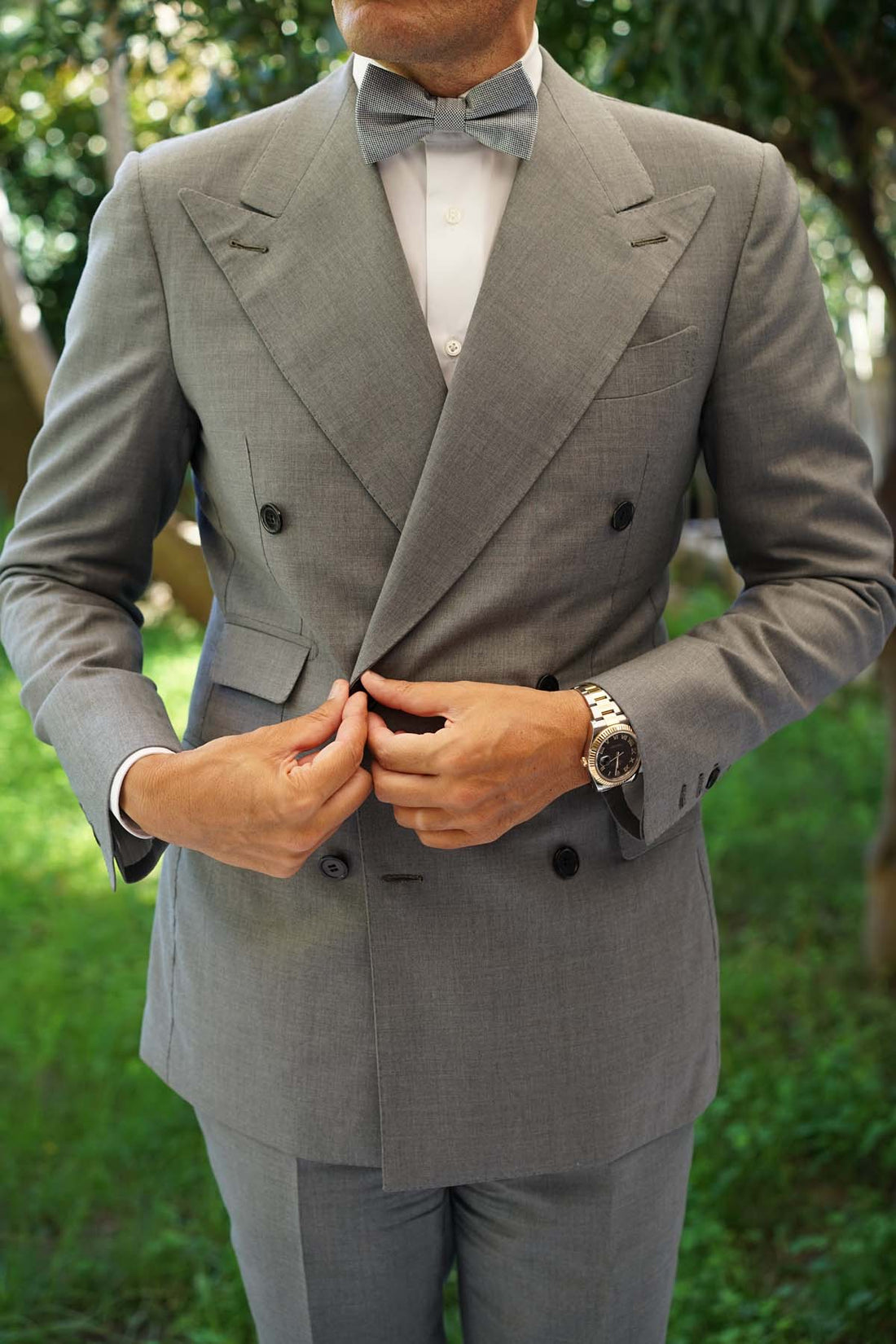 The black and white bow tie is an absolute essential due to its simplicity and versatility for any formal or tie event. The light grey tone would be perfect for black groomsmen suits.