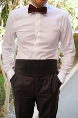The OTAA Black Cummerbund evokes a dapper old-school vision of formal dress. Worn under a dinner jacket as a lighter alternative to a waistcoat, this pleated satin black cummerbund will finish any black tie outfit with flair and comes in a dark shade that perfectly matches the coordinating tuxedo and bow tie. Wear it with a silk tuxedo, shirt and bow tie, and sleek shoes. Designed exclusively for OTAA.