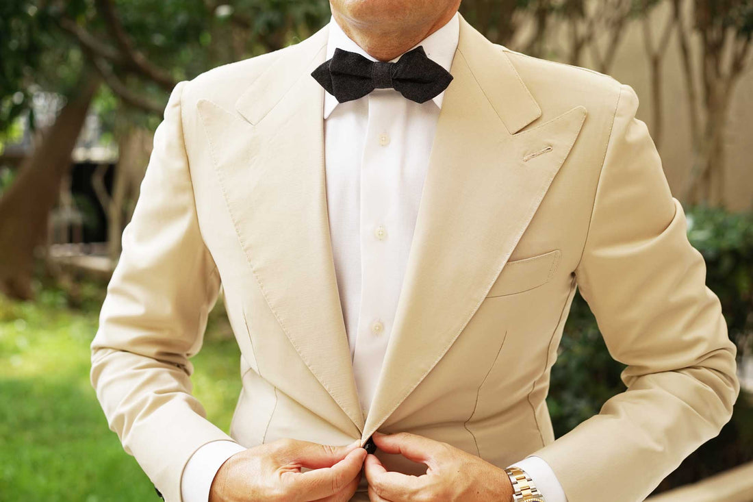 Designed with the label's trademark hand-stitching, this Black Denim Jeans Cotton Diamond Bow Tie is one incredibly plush asset to own. We know that you're on the lookout for something that's effortlessly stylish. Something that doesn't try too hard. That's why we designed Black Denim Jeans Cotton Diamond Bow Tie to give a laidback perspective to your boardroom styles. It works hard on all fronts including comfort, durability and versatility to give you one of the most trustworthy diamond bowties you'll ever buy. With a soft cotton fabric and elegant hand-tailored features, this diamond bowtie is just a little gift, from us to you. Designed exclusively by the Brothers at OTAA.