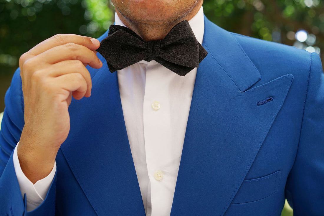 Designed with the label's trademark hand-stitching, this Black Denim Jeans Cotton Self Tie Diamond Bow Tie is one incredibly plush asset to own. We know that you're on the lookout for something that's effortlessly stylish. Something that doesn't try too hard. That's why we designed Black Denim Jeans Cotton Self Tie Diamond Bow Tie to give a laidback perspective to your boardroom styles. It works hard on all fronts including comfort, durability and versatility to give you one of the most trustworthy diamond bowties you'll ever buy. With a soft cotton fabric and elegant hand-tailored features, this untied diamond bowtie is just a little gift; from us to you. Designed exclusively by the Brothers at OTAA.