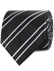 Assembled in-house by hand, the satin fabric is cut, sewn and stitched to perfection. Thin ribbons of chromatic white diagonally cut across the gentle sheen of the black noire body of the tie, with multi-directional weavings implemented to create an angular mix of textures to perfectly compliment the sharp aesthetic. Enticingly balanced with an elaborate yet minimalist design, the Black Double Stripe Tie is set to be a trendsetting staple in your fashion landscape.