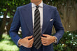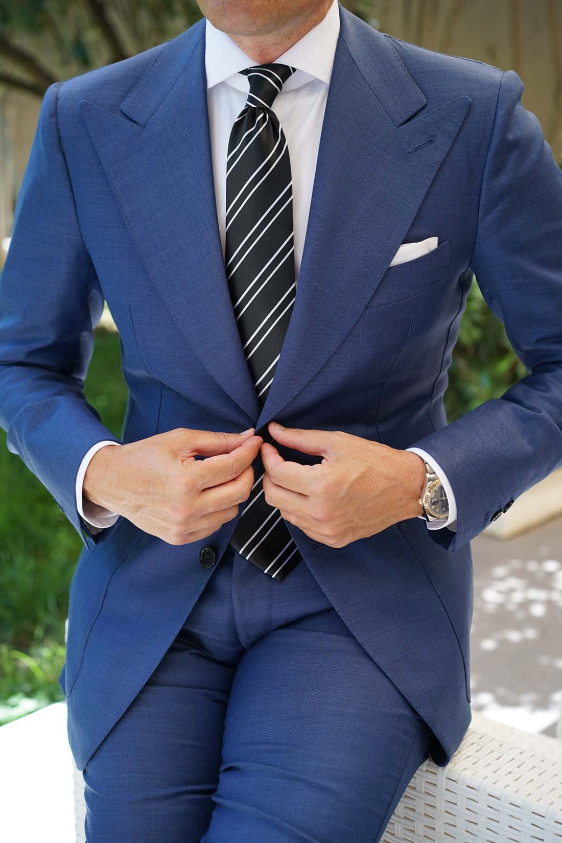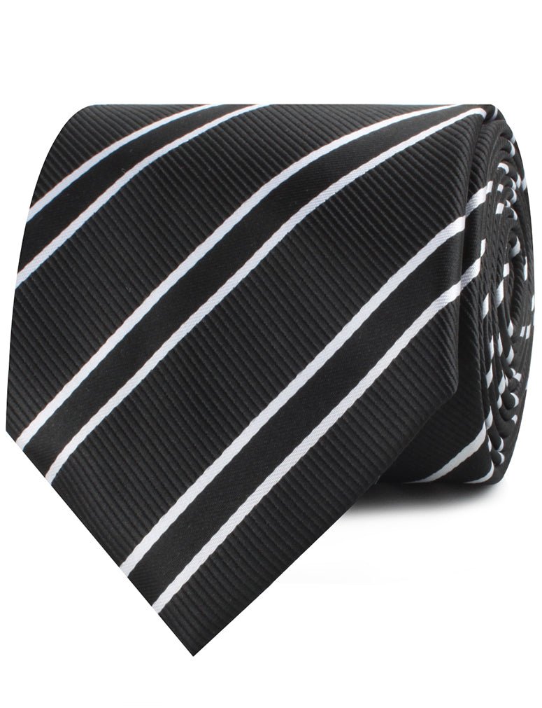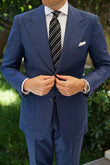 The Black Double Stripe Necktie is a sumptuous piece of attire, crafted with care, to lift your entire ensemble. Enter any VIP box or boardroom with the swagger of The Wolf of Wall Street, nobody will even think twice. They may, however, think thrice, about how damn handsome you are when you wear this tie.