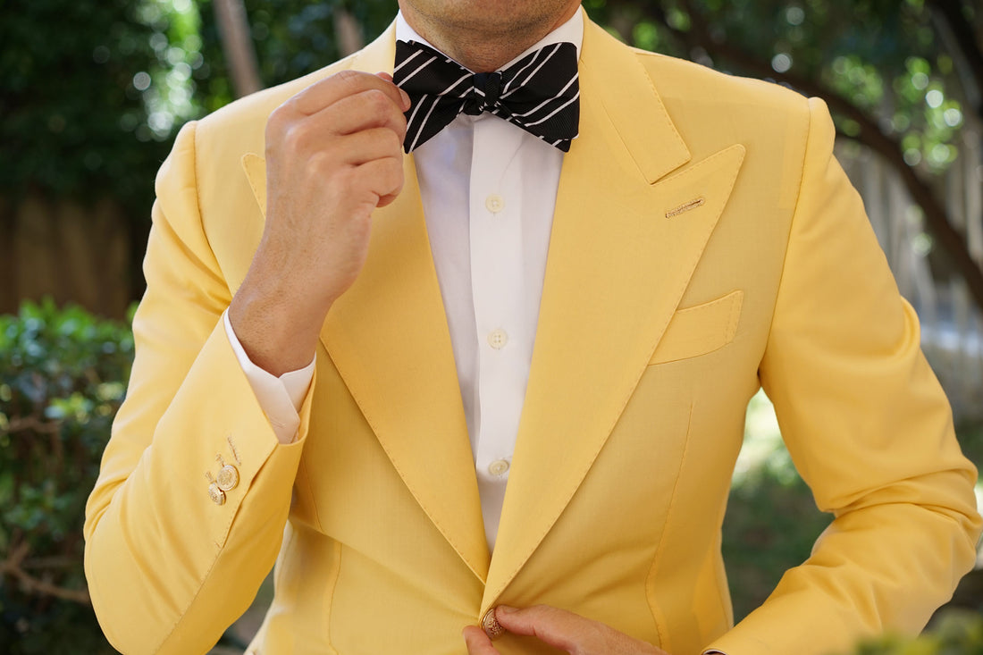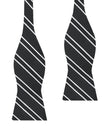 The Black Double Stripe Self Tie Bow Tie is a sumptuous piece of attire, crafted with care, to lift your entire ensemble. Enter any VIP box or boardroom with the swagger of The Wolf of Wall Street, nobody will even think twice. They may, however, think thrice, about how damn handsome you are when you wear this Untied Bow Tie.