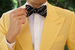 Assembled in-house by hand, the satin fabric is cut, sewn and stitched to perfection. Thin ribbons of chromatic white diagonally cut across the gentle sheen of the black noire body of the Untied Bow Tie, with multi-directional weavings implemented to create an angular mix of textures to perfectly compliment the sharp aesthetic. Enticingly balanced with an elaborate yet minimalist design, the Black Double Stripe Untied Bow Tie is set to be a trendsetting staple in your fashion landscape.