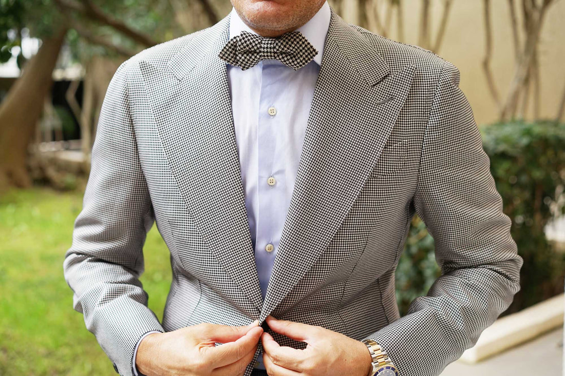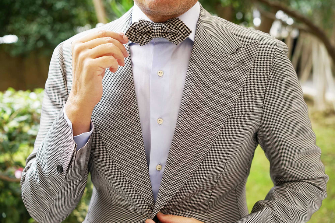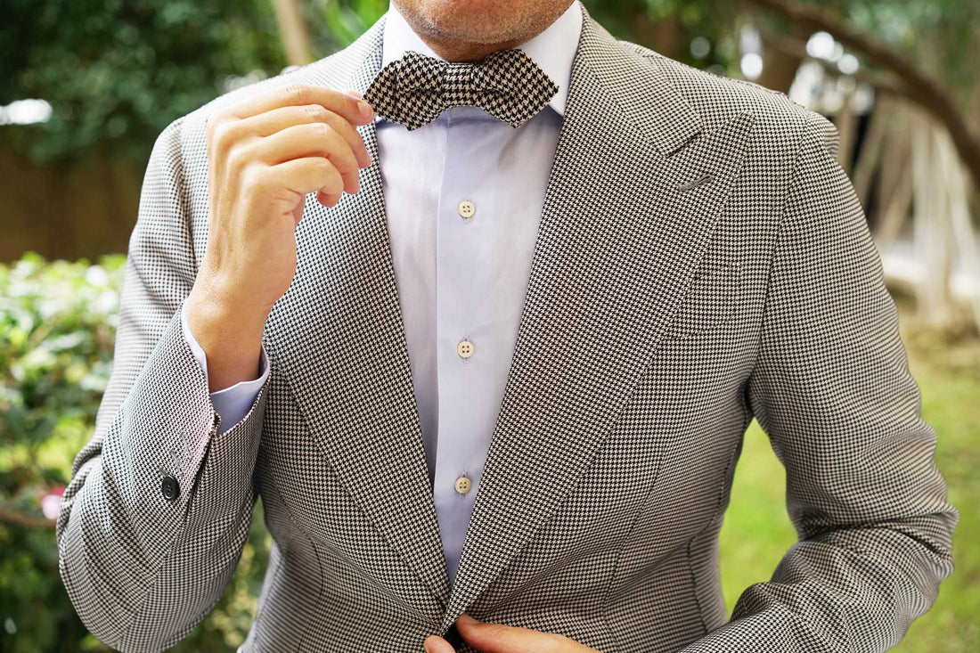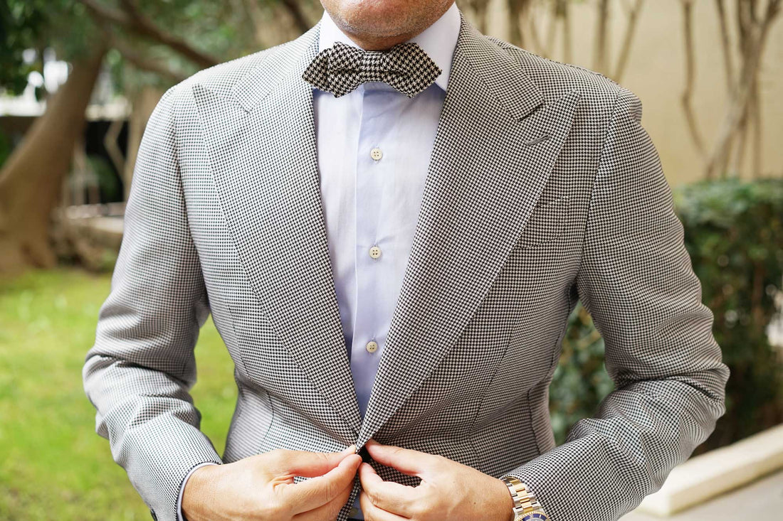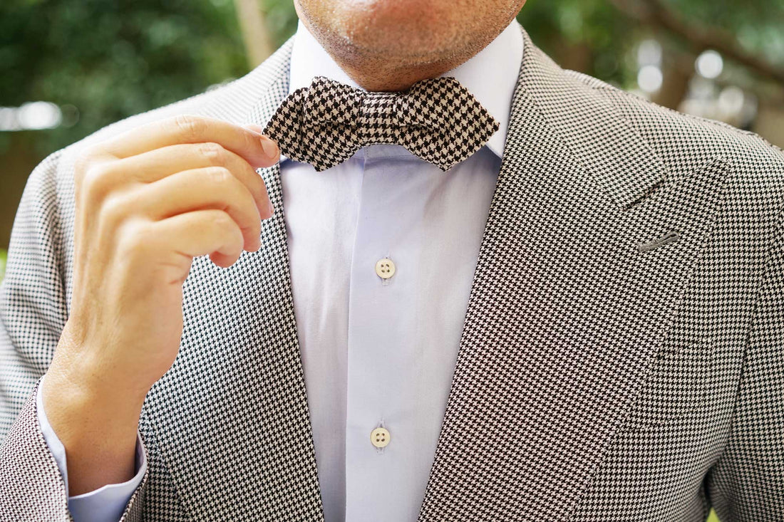 The hallmark of OTAA’s designs is the combination of hand-stitching and lustrous fabric; this Black Houndstooth Spider Linen Diamond Bowtie is the perfect example. With a vintage appeal and sophisticated outlook, this linen diamond pre-tied bowtie undoubtedly excels in design. The luxurious tailoring of the Black Houndstooth Spider Linen Diamond Bowtie offers a sleek showcasing of OTAA’s high-quality signature.