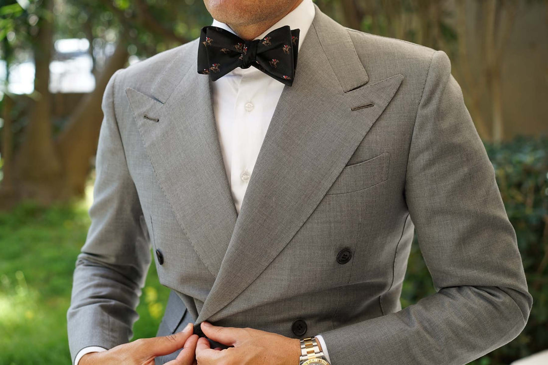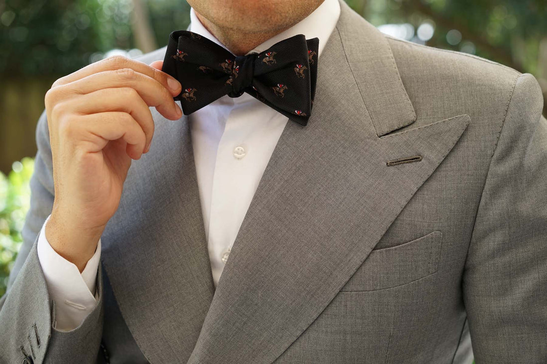 Set yourself up for success at race day with OTAA’s Black Melbourne Race Horse Self Tie Bow Tie. The Melbourne Cup is Australia's most prestigious annual thoroughbred horse racing event and the country's largest social occasion. Revered for its extravagant “fashions on the field”, this superb untied bow tie was designed to put a winning edge in your stride at this year’s cup.