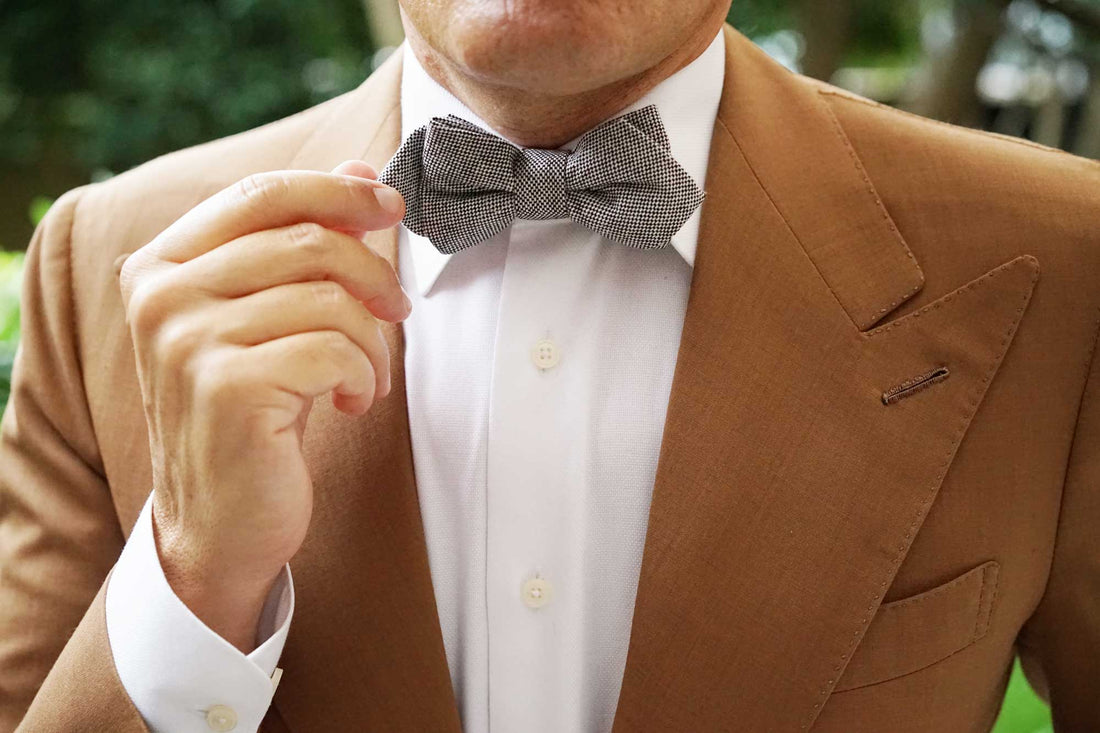 Sharp and sophisticated; the Black Tweed Linen Stitching Diamond Bow Tie is a knock-out complement for evening styles. Impeccably finessed with a classic black and white palette, the Black Tweed Linen Stitching Diamond Bow Tie has all the right ingredients to make an elegant statement. Beautifully textured with a tweed linen fabric, this diamond bowtie has been backed up by hand-stitching and impeccable tailoring to ensure your maximum comfort. Let its clean silhouette give you an extra point of confidence when you march out the door. Designed exclusively by the Brothers at OTAA.