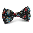 Hand-sewn and tailored to perfection, this handsome boys bow tie emanates a high-quality presence as part of tailored ensembles. With a decadent black palette and ebullient blue, white and yellow features, this boys bow tie showcases a paisley teardrop pattern with subtle floral motifs. Designed exclusively by the Brothers at OTAA, we present you with the Black Twisted Teardrop Paisley Kids Bowtie. Recommended by Mr Bond himself (the Italian consultant).