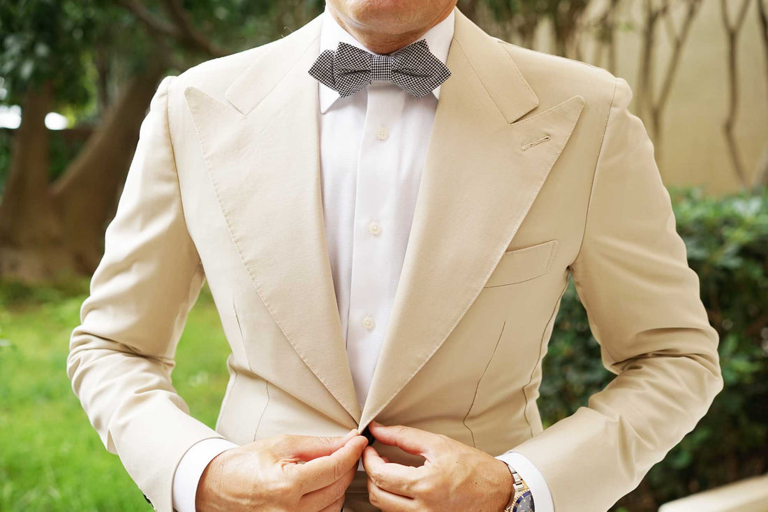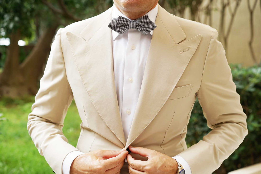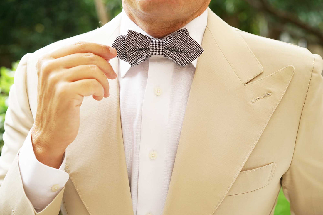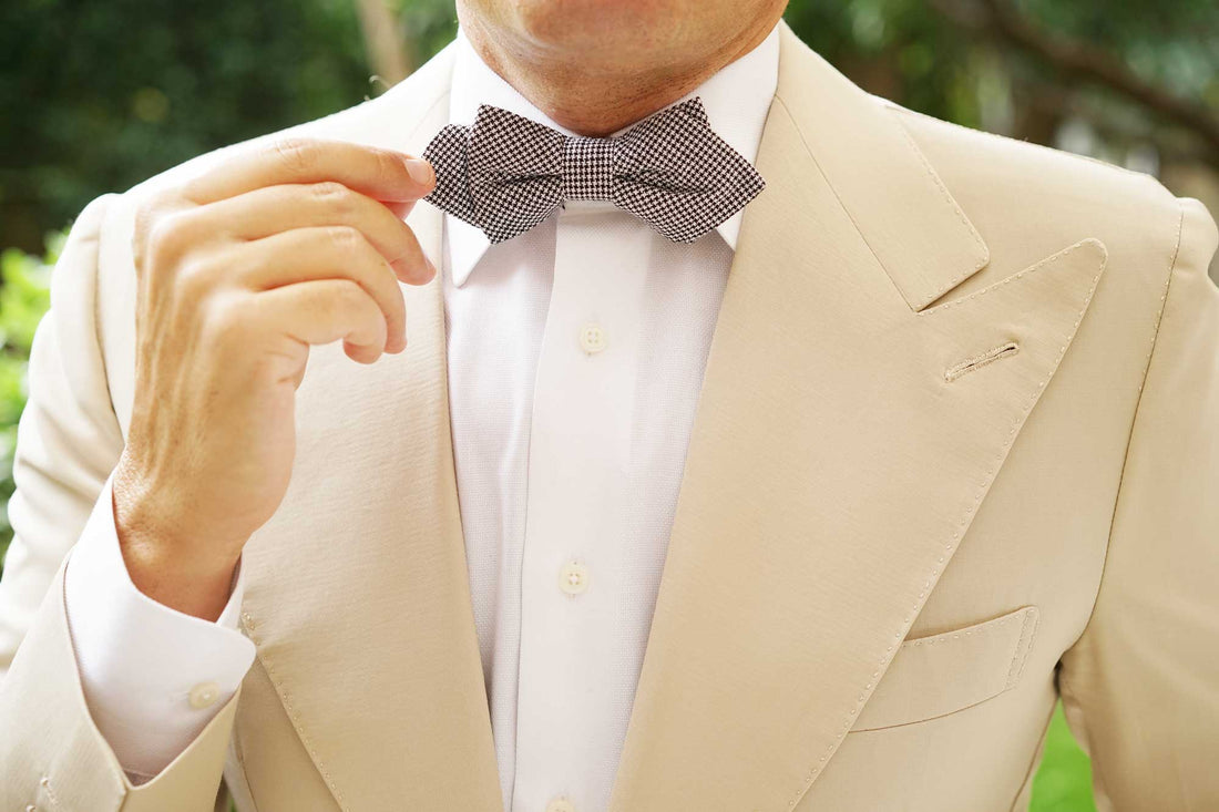 Black & White Houndstooth Cotton Diamond Bow Tie