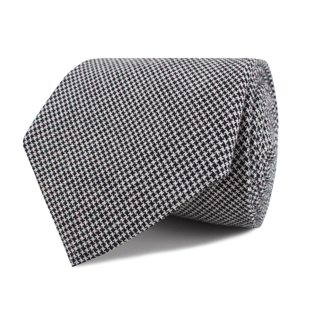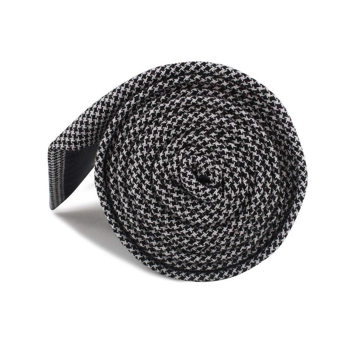 Impeccably cut from a soft cotton, this Black & White Houndstooth Cotton Necktie will round off any look in dapper style. This luxurious piece is patterned with mid-sized black and white Prince of Wales Houndstooth check. Try wearing it with black trousers to add a dashing cut.
