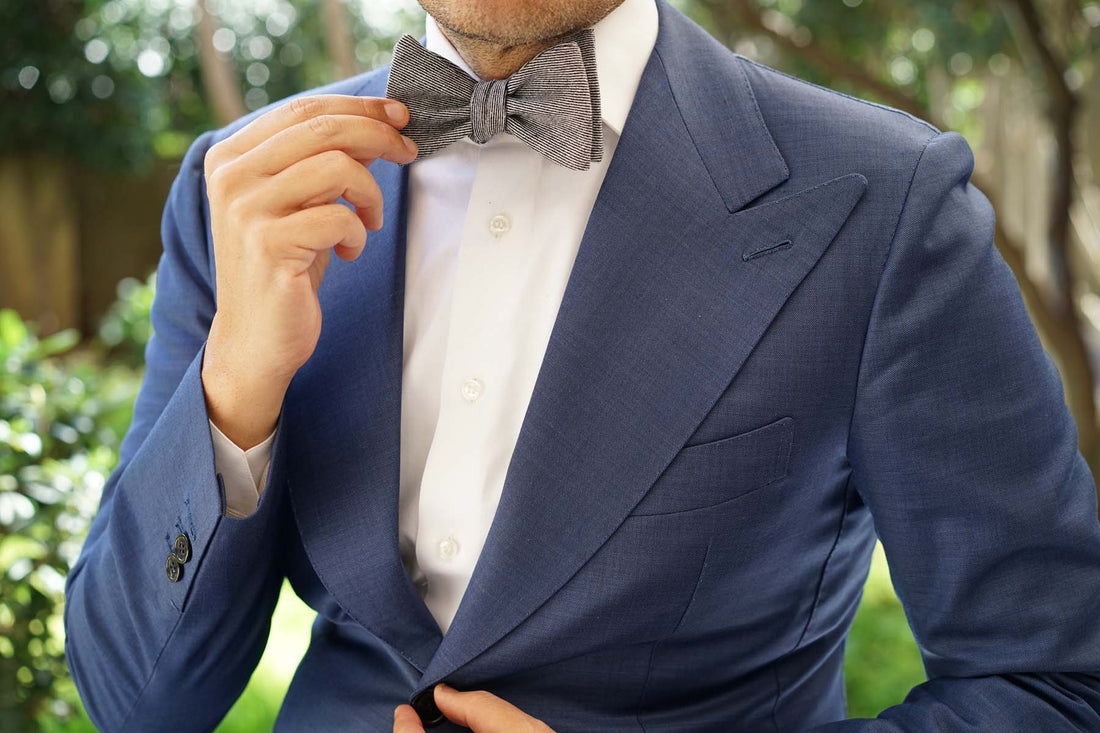 Black & White Twill Stripe Linen Self Tie Bow Tie