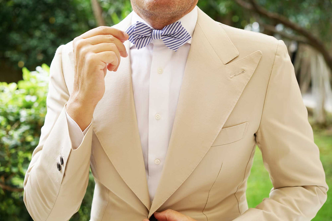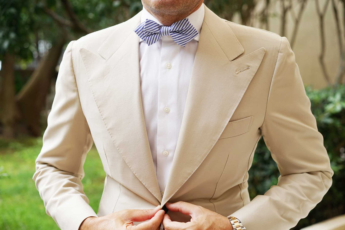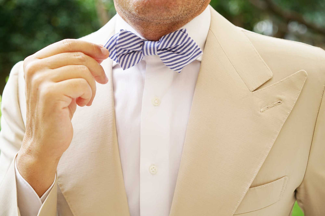 If you're a man who prizes understated luxury, the Blue and White Chalk Stripe Cotton Diamond Bow Tie is your new front-runner. Impeccably finessed with an indisputably versatile palette, this diamond bowtie is kitted out with blue and white accents that are configured in a pinstripe pattern. Both modern and sleek, yet classically refined all in one; the Blue and White Chalk Stripe Cotton Diamond Bow Tie is a tried-and-tested winner for men who like to command attention. Let its hand-stitched approach and beautifully tailored cotton fabric gift you an extra point of luxury few other bowties can provide. Designed exclusively by the Brothers at OTAA.