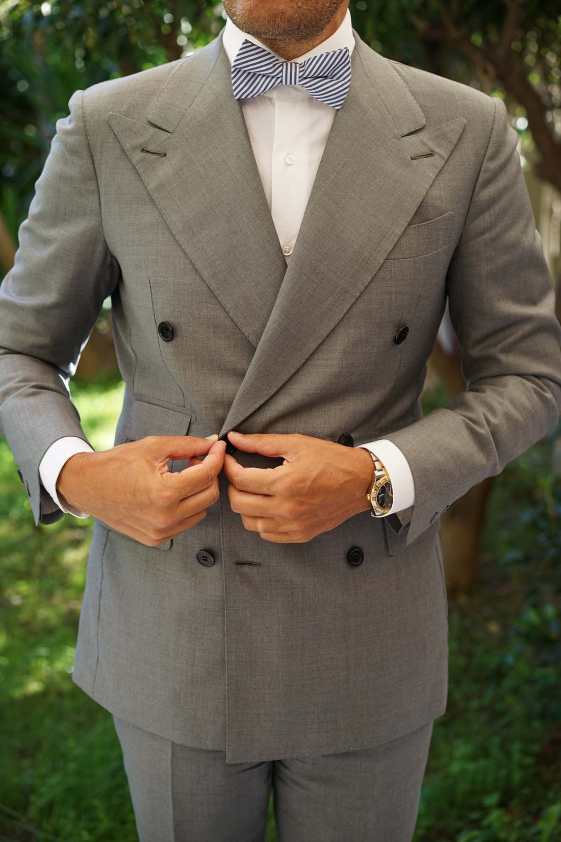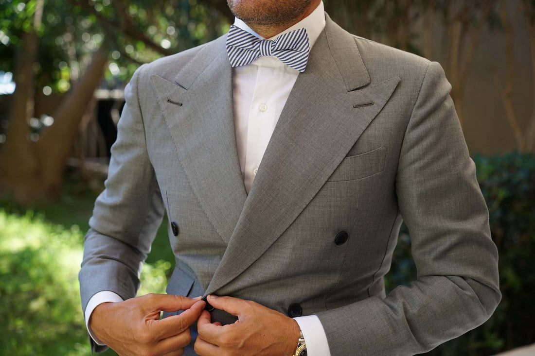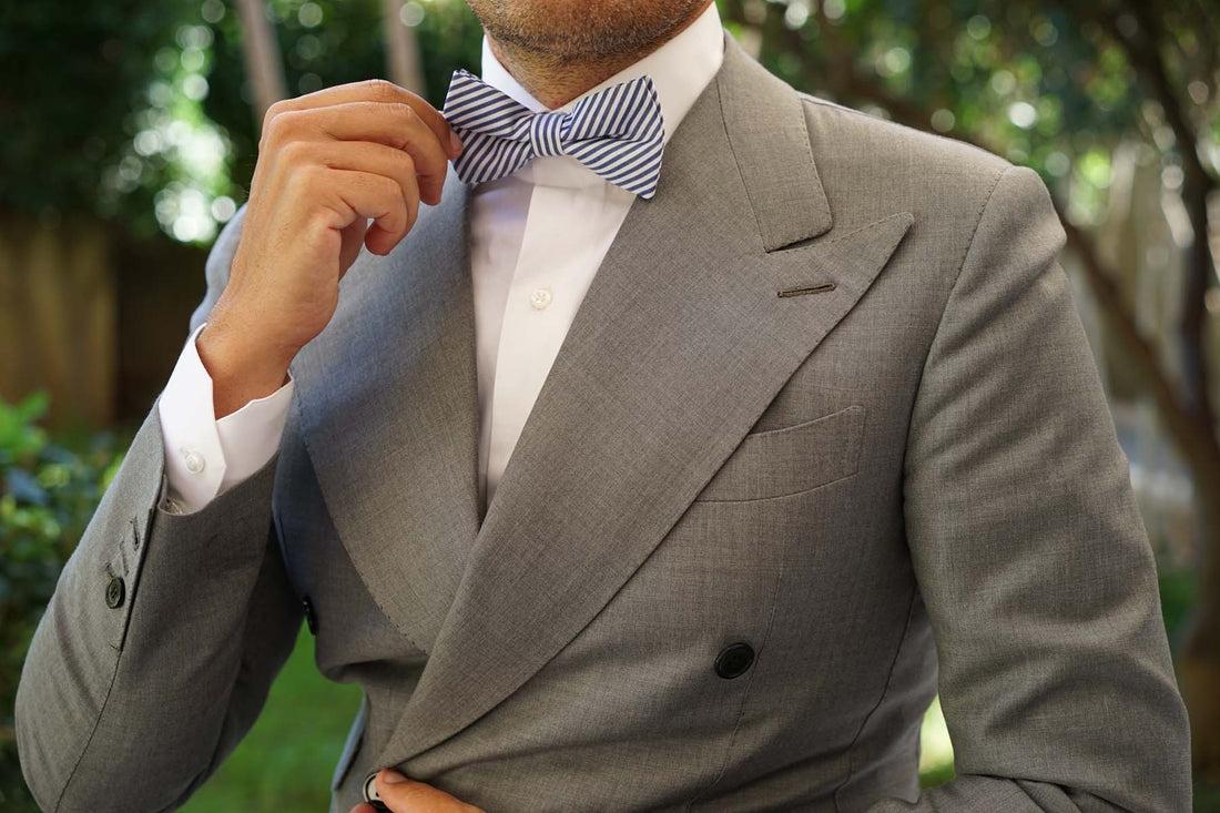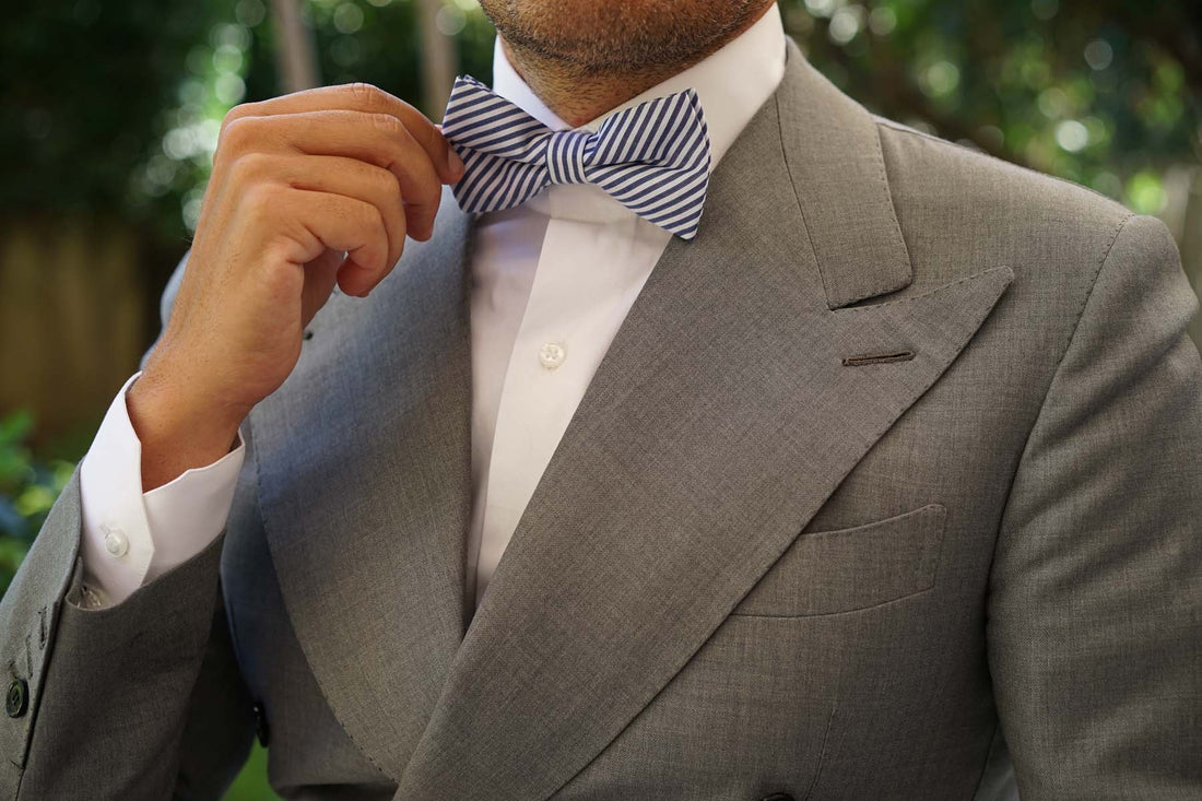 OTAA's luxurious pre-tied bow tie is handmade from pure cotton. The world's highest quality of cotton is also among the most durable natural fibres, demonstrating our Melbourne brand's dedication to craftsmanship. This timeless Blue and White Chalk Stripes Cotton Bow Tie exudes subtle elegance. Wear it to the office with navy tailoring to complete the dapper look.